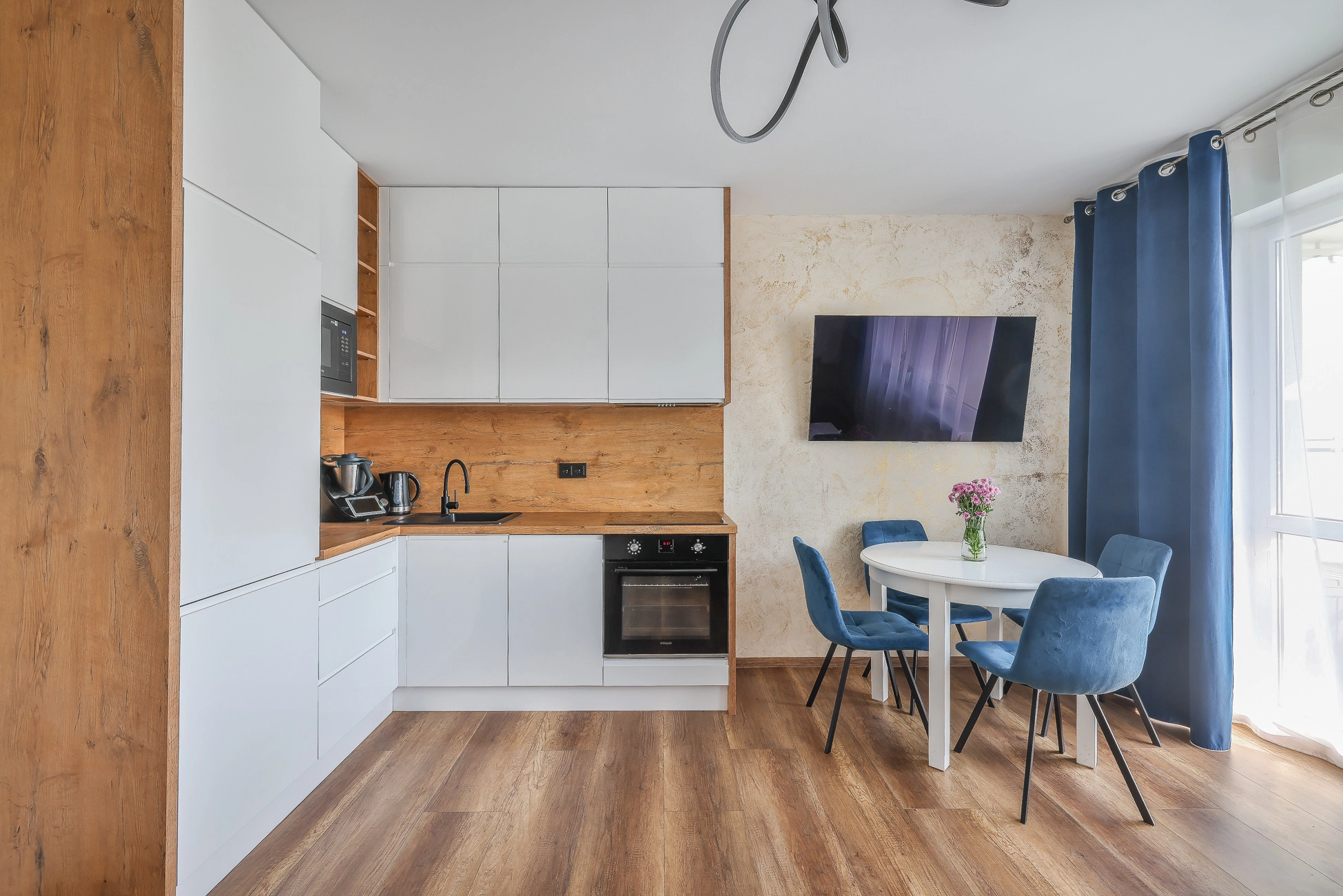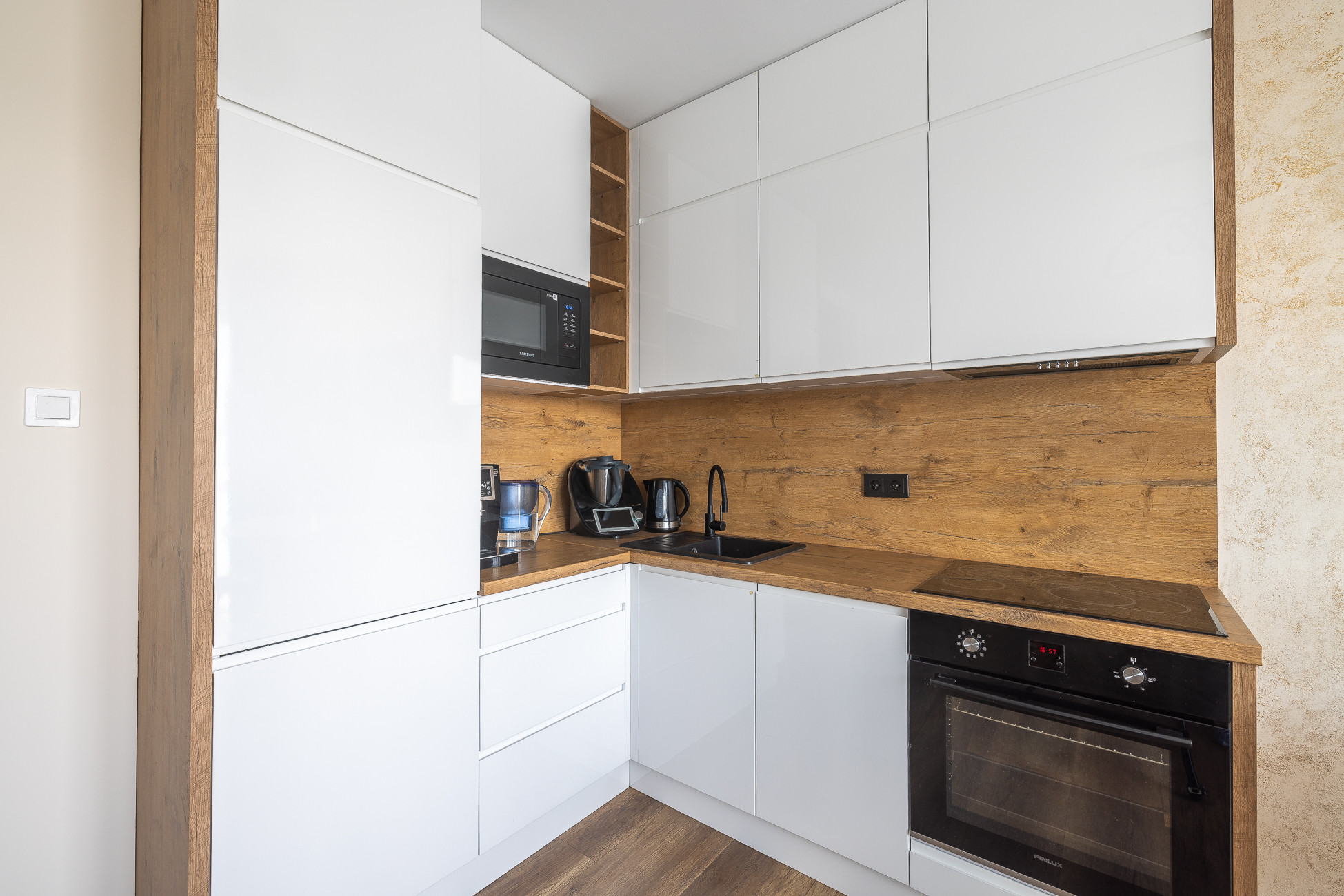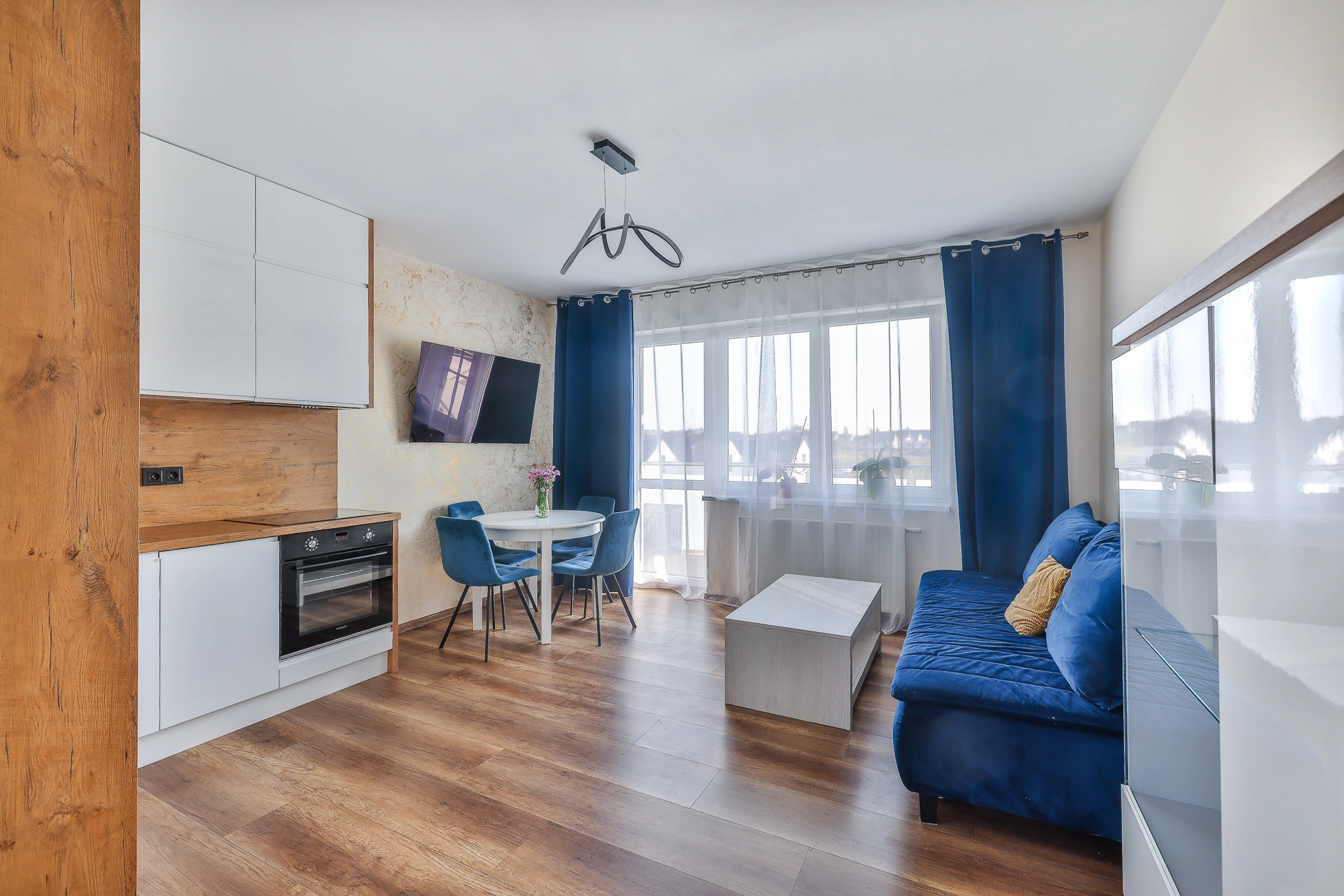 – salon z aneksem kuchennym (18,48 m2) oraz wyjściem na balkon,