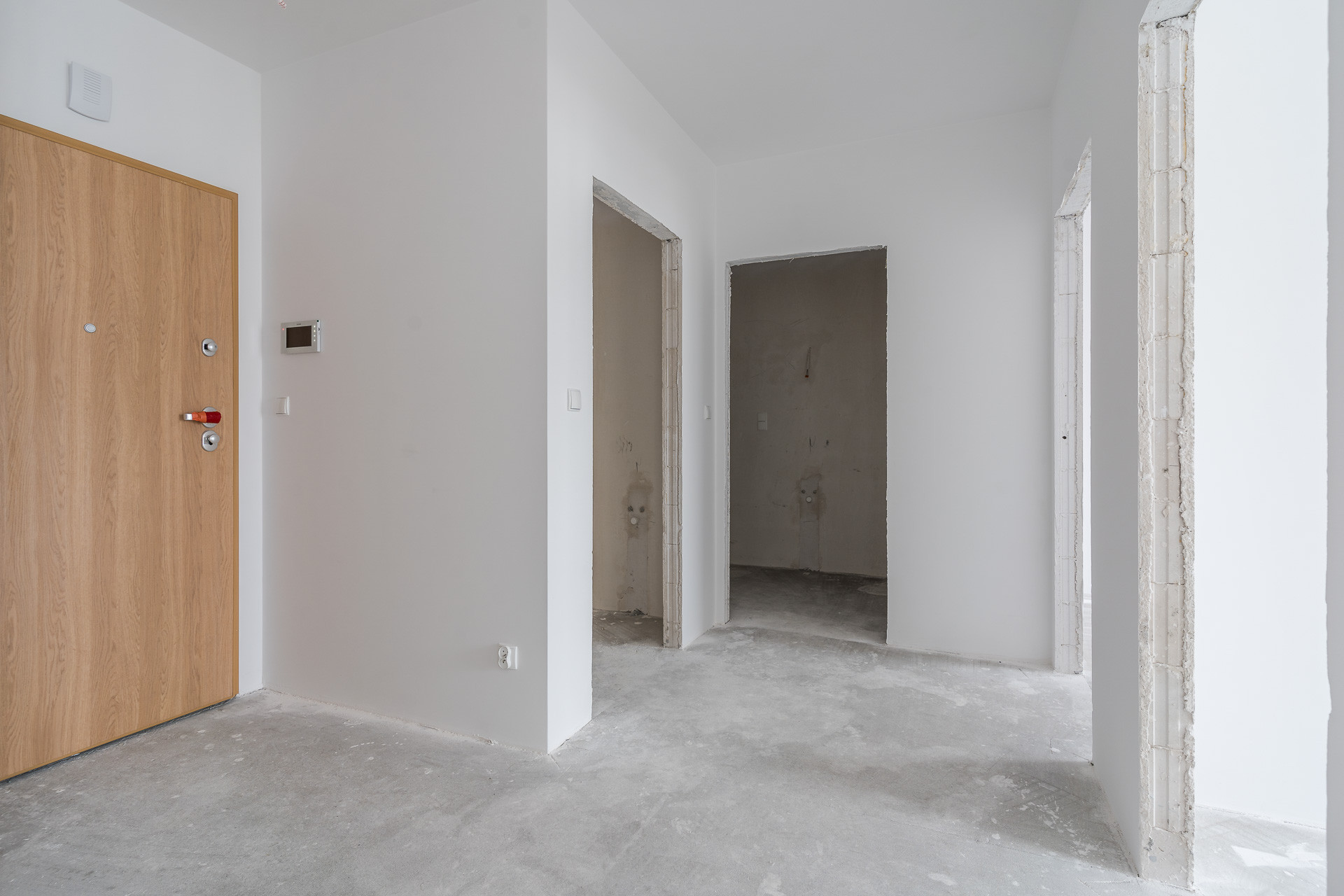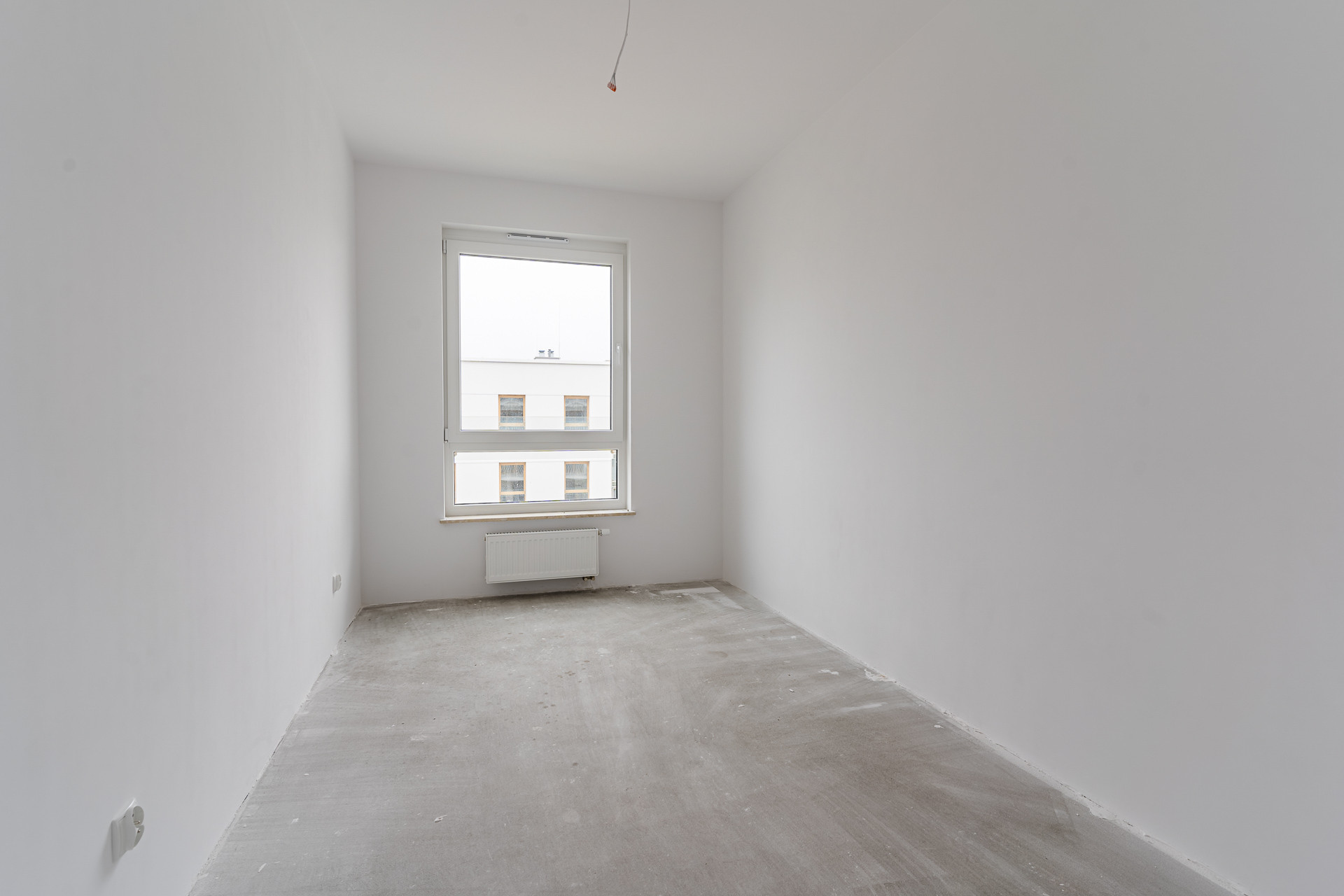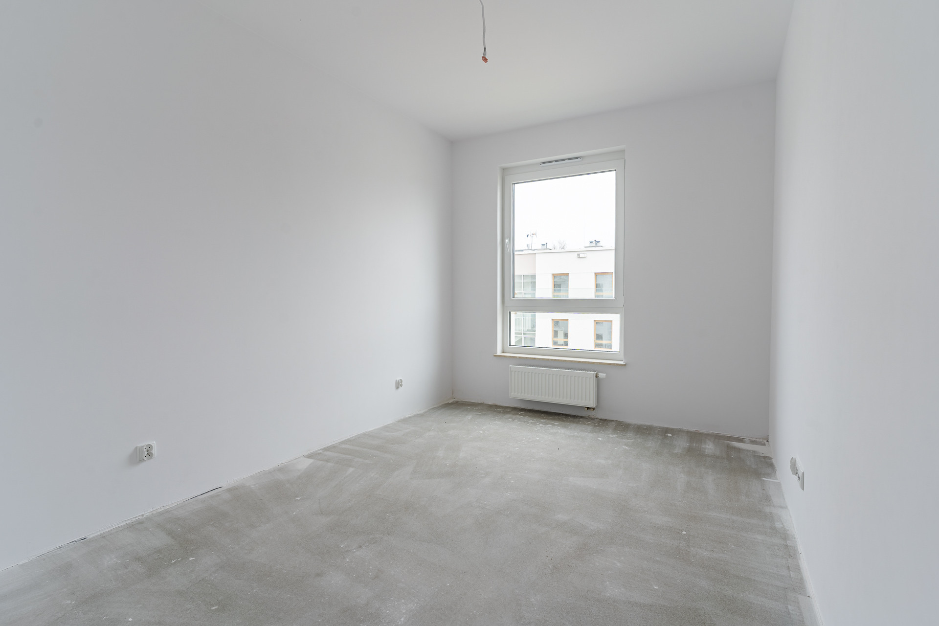 Mieszkanie w stanie deweloperskim, po odbiorach, z pozwoleniem na użytkowanie. Wysokość pomieszczeń: 2,65 m. Na podłogach wylewka betonowa. Ogrzewanie i ciepła woda z sieci miejskich. Okna są plastikowe, a ich wystawa południowo-zachodnia.