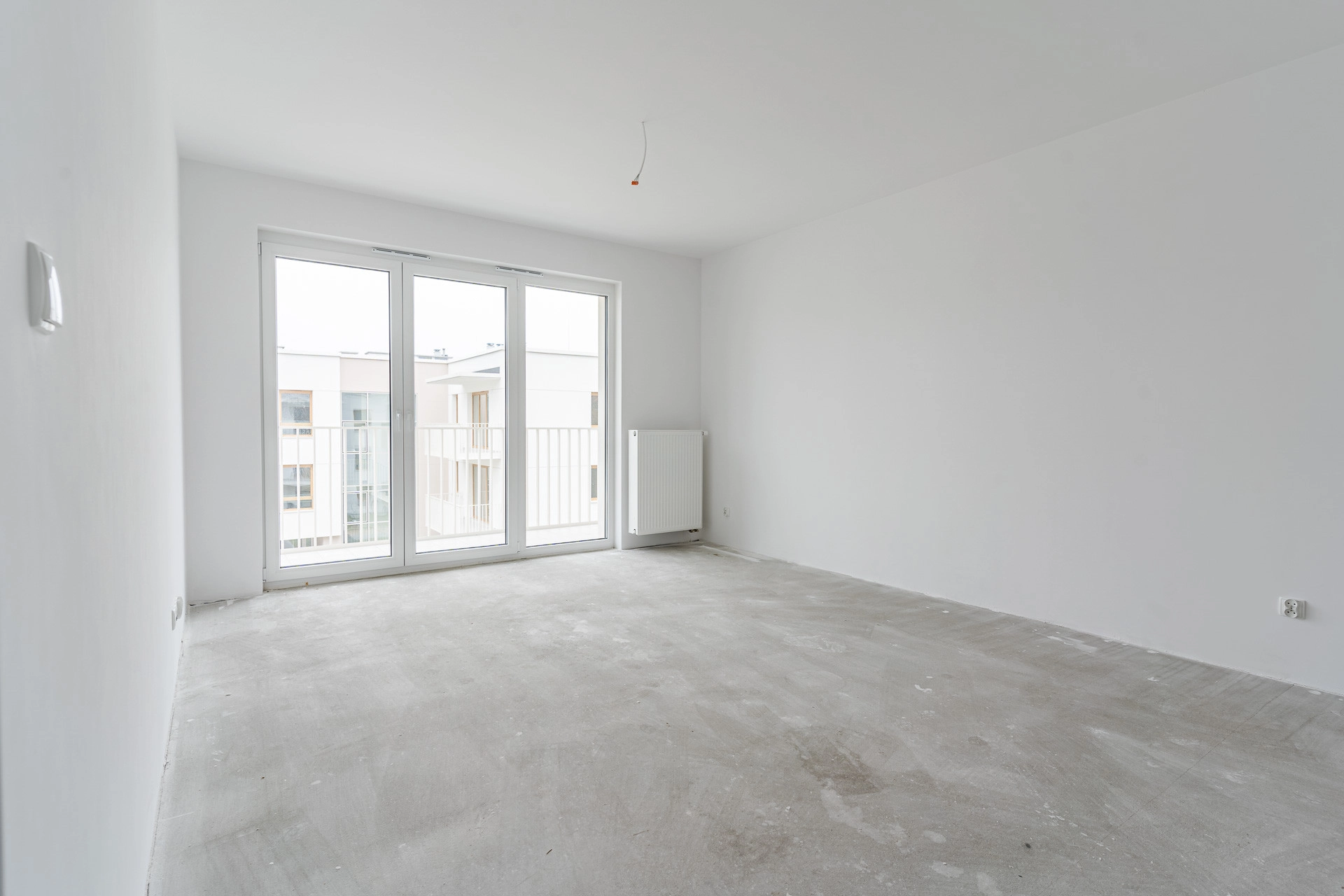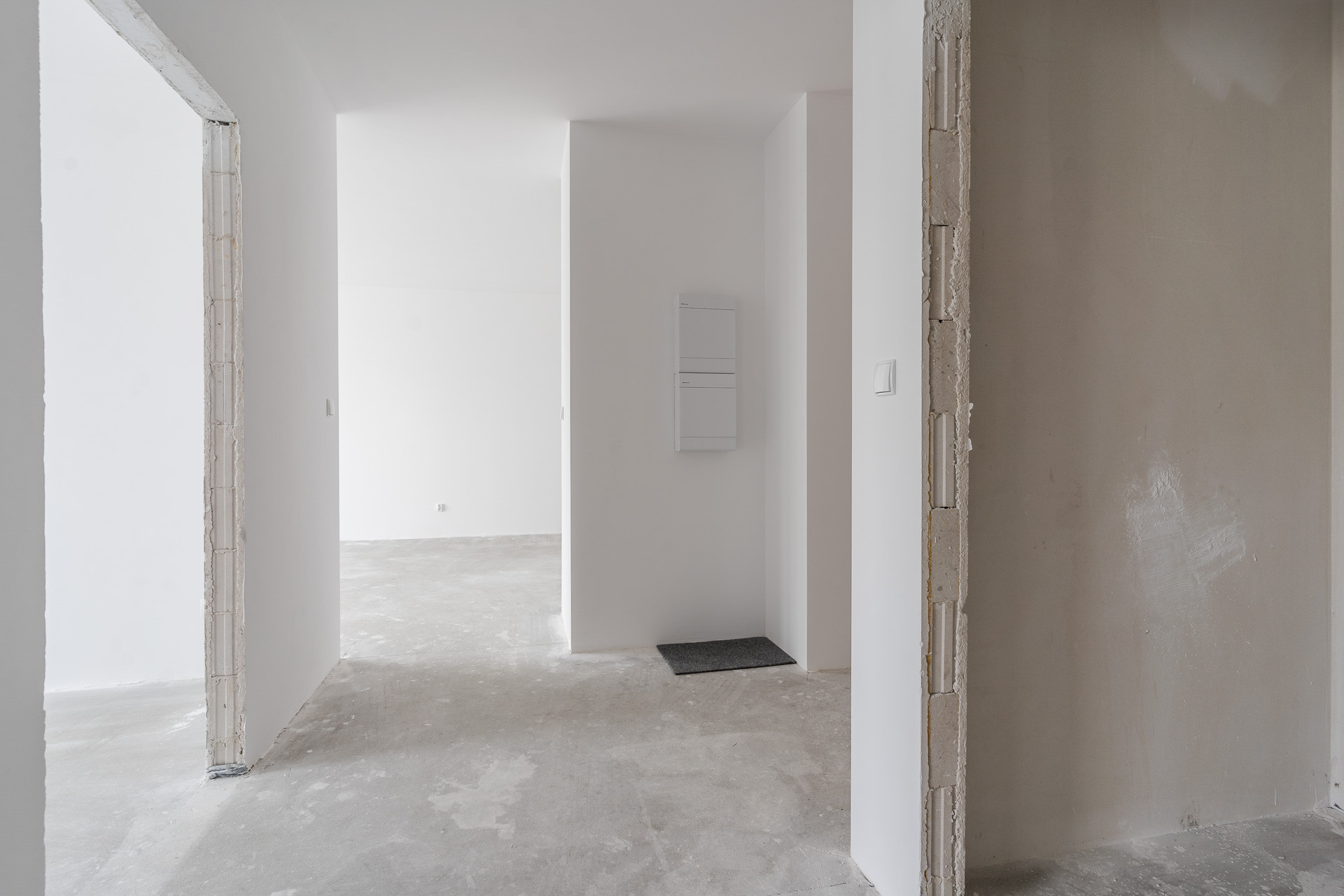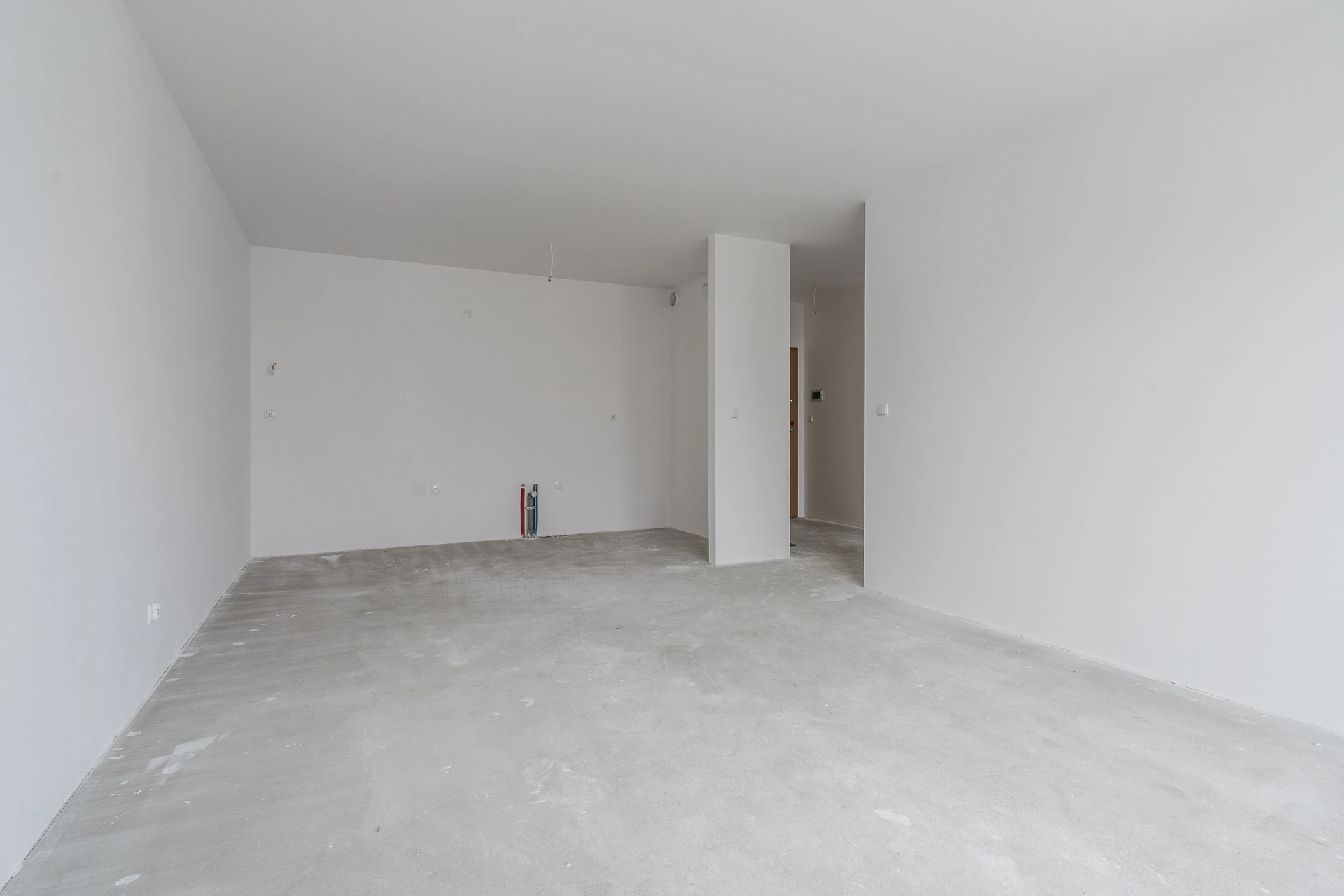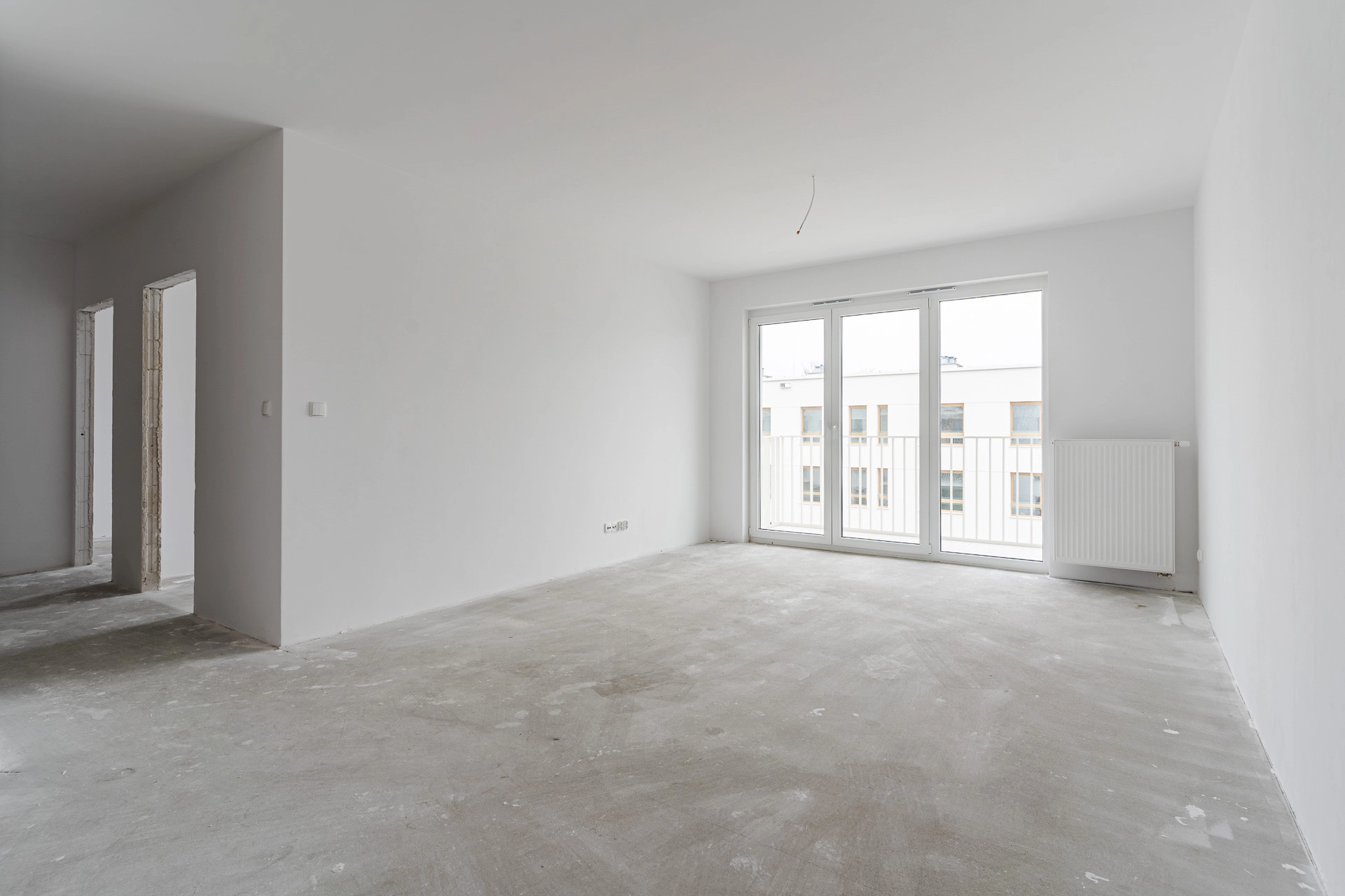 Mieszkanie w stanie deweloperskim, po odbiorach, z pozwoleniem na użytkowanie. Wysokość pomieszczeń: 2,65 m. Na podłogach wylewka betonowa. Ogrzewanie i ciepła woda z sieci miejskich. Okna są plastikowe, a ich wystawa południowo-zachodnia.