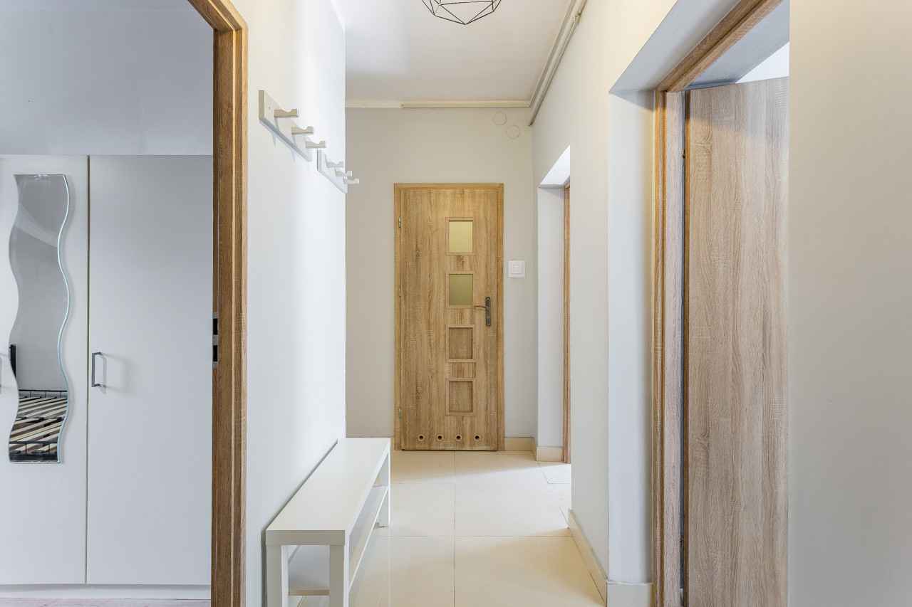 – 3 pokoje (16,77 m2, 14,74 m2 oraz 10,56 m2); w każdym z nich wolnostojące szafy ułatwiające przechowywanie,