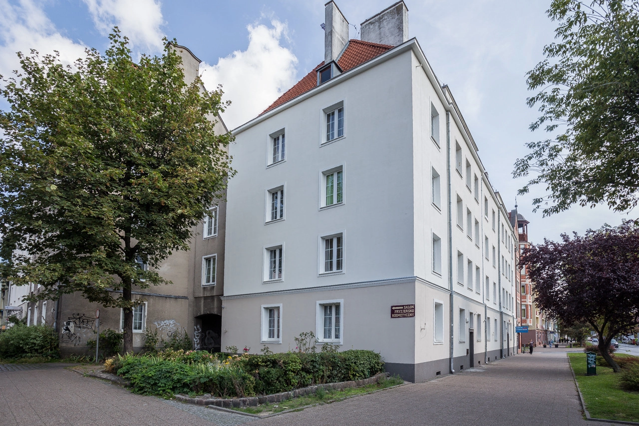 BUDYNEK: mieszkanie mieści się na wysokim parterze w 3-piętrowej kamienicy z lat 60-tych XX wieku, którą wykonano z cegły, a dach pokryto dachówką ceramiczną. Ogólny stan całej nieruchomości należy uznać za bardzo dobry. Dach i elewacja po remoncie. Wejście do klatki schodowej zabezpieczone jest domofonem. Klatka czysta i zadbana. Do wspólnego użytku mieszkańców także suszarnia. W podwórzu znajdziemy miejsca postojowe dostępne tylko dla mieszkańców budynku, a w pobliżu nieruchomości ogólnodostępne miejsca postojowe (strefa płatnego parkowania).