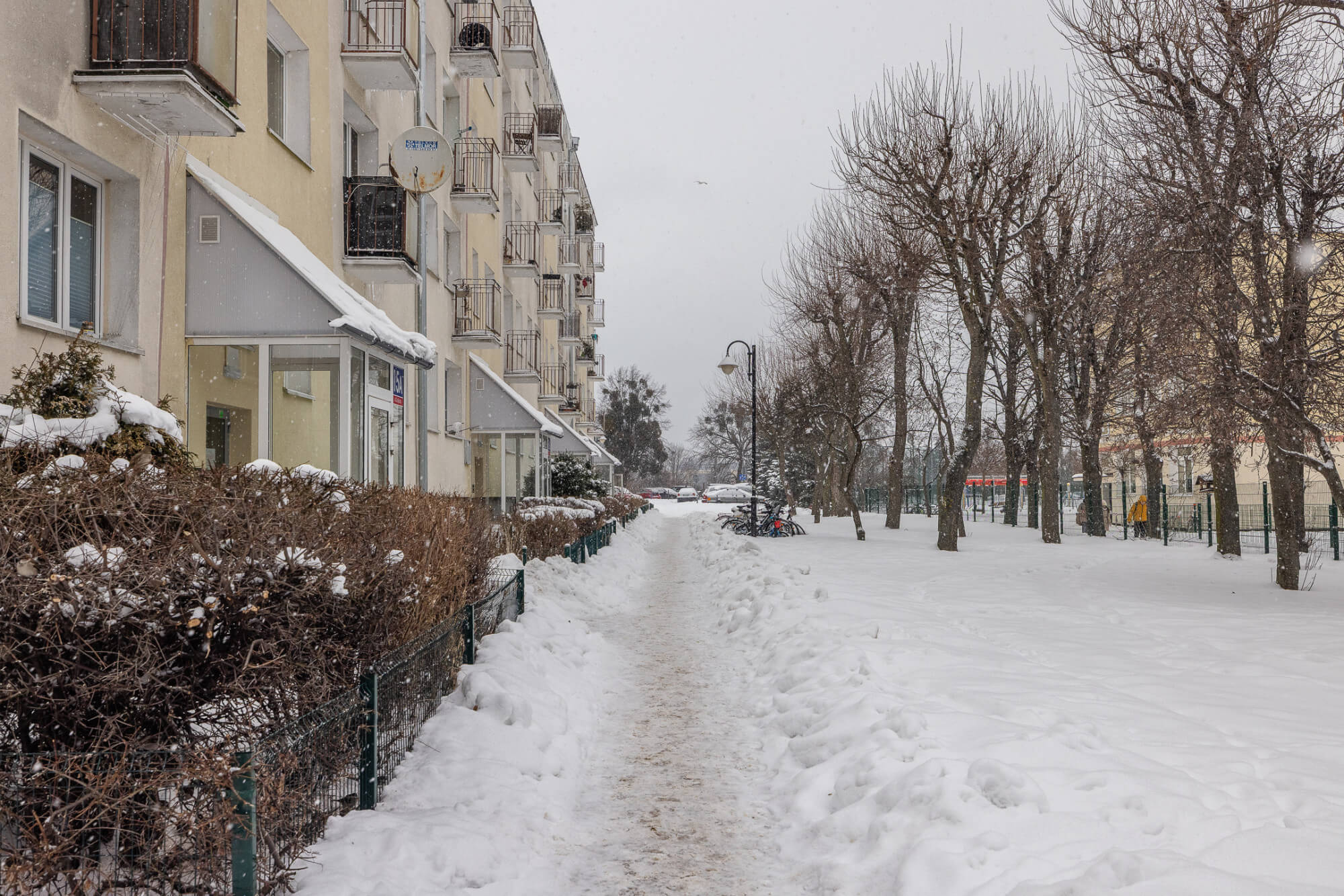 Przy budynku znajdziemy m.in. przedszkole oraz szkołę podstawową oraz pełne zaplecze handlowo usługowe – od fryzjera po Biedronkę i aptekę.