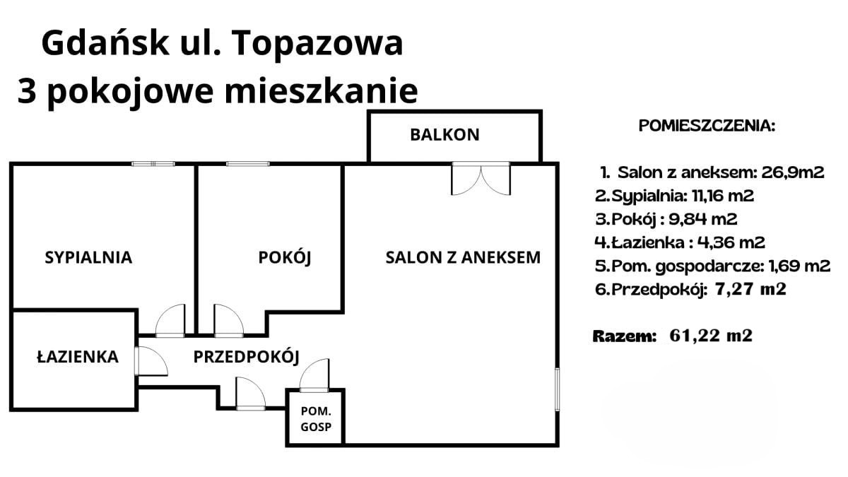 Przedstawiam Państwu wyjątkową ofertę sprzedaży eleganckiego i funkcjonalnie dopracowanego mieszkania o powierzchni 61,22 m², usytuowanego w nowoczesnym budynku z 2022 roku. To idealna propozycja dla osób ceniących komfort, funkcjonalność i świetną lokalizację – w spokojnej dzielnicy, z doskonałym dojazdem do centrum Gdańska.