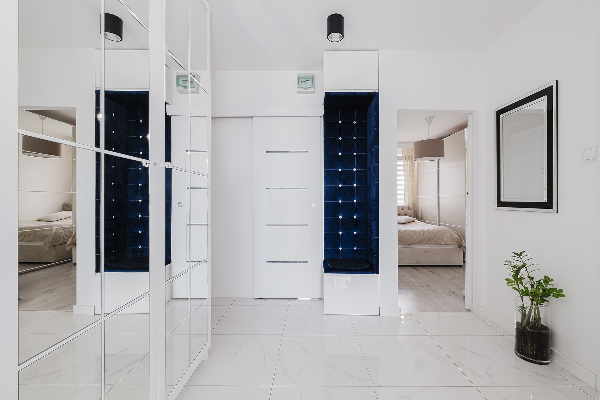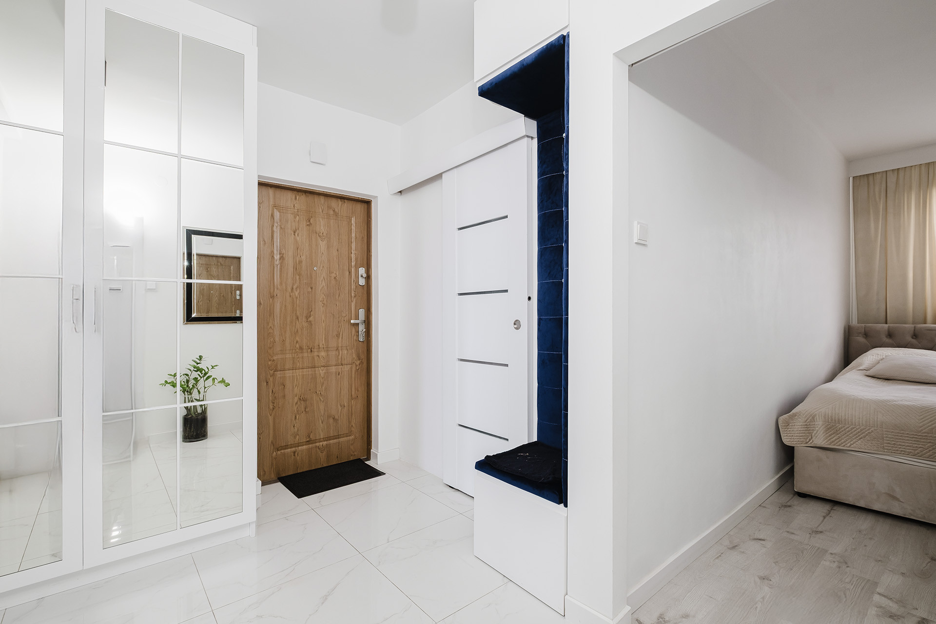 -przestronny korytarz z miejscem do przechowywania.