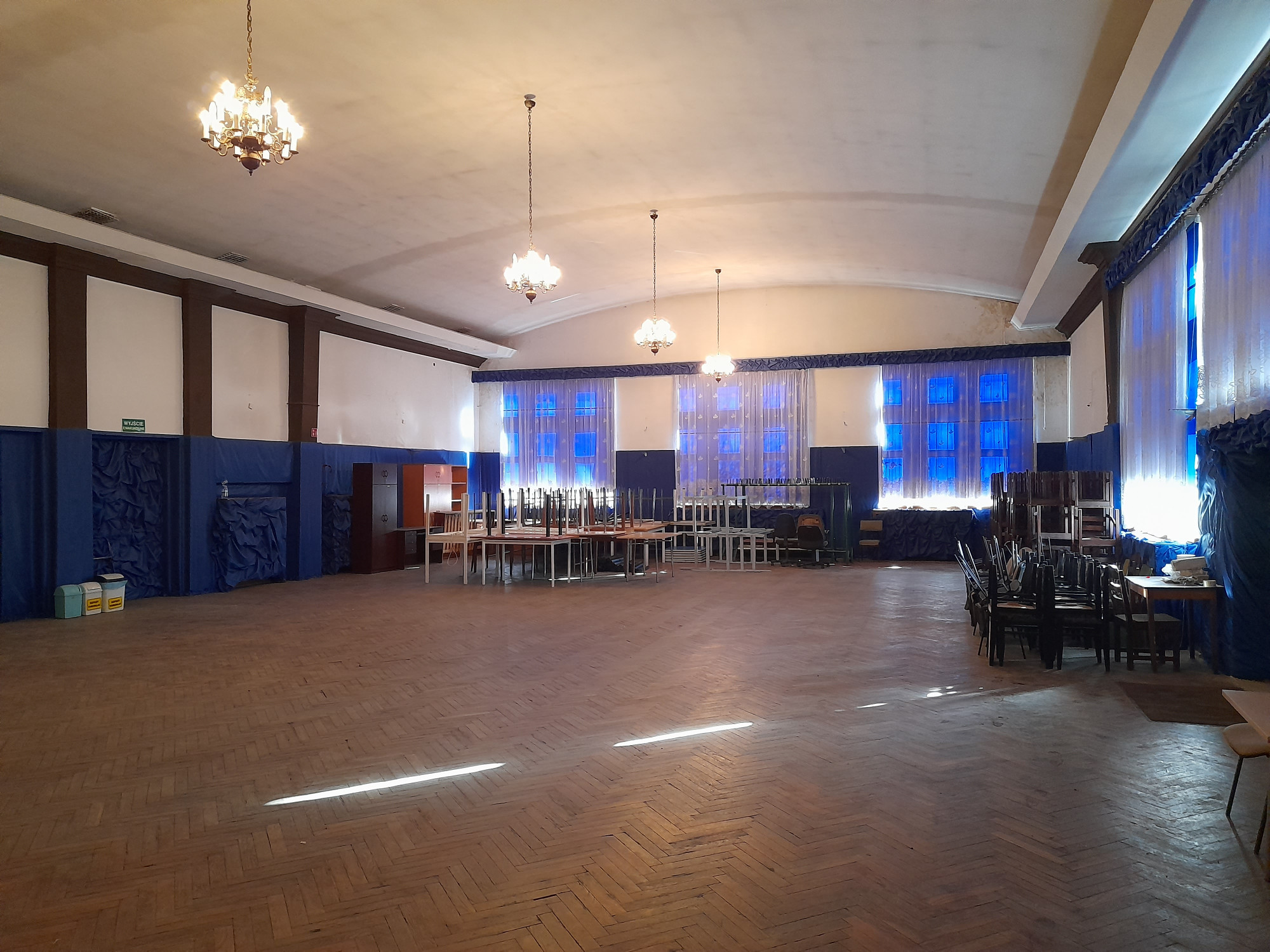 Budynek 1: Sala Kinowa/Teatralna/ Bankietowa wraz ze sceną teatralną – powierzchnia około 350 m2,