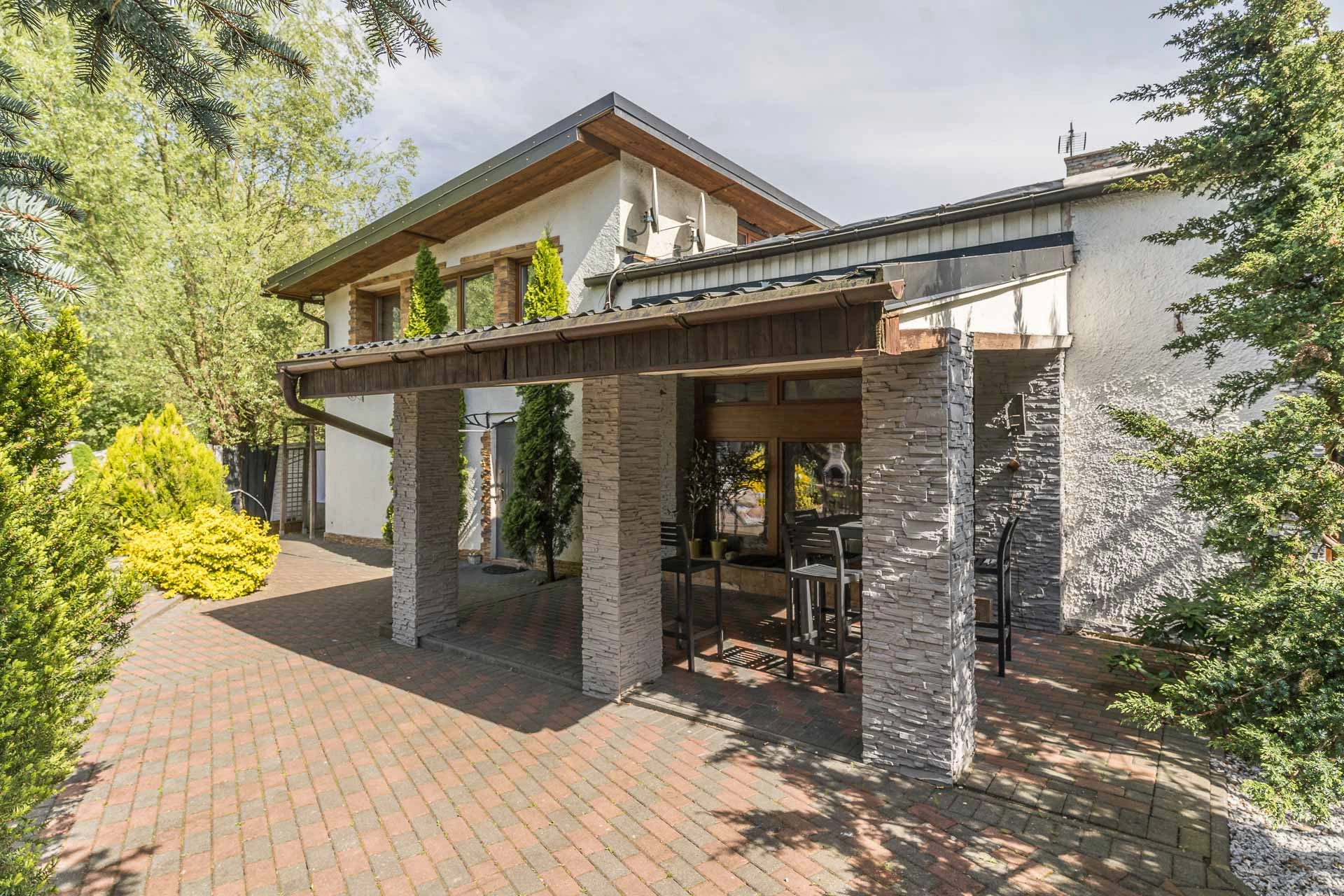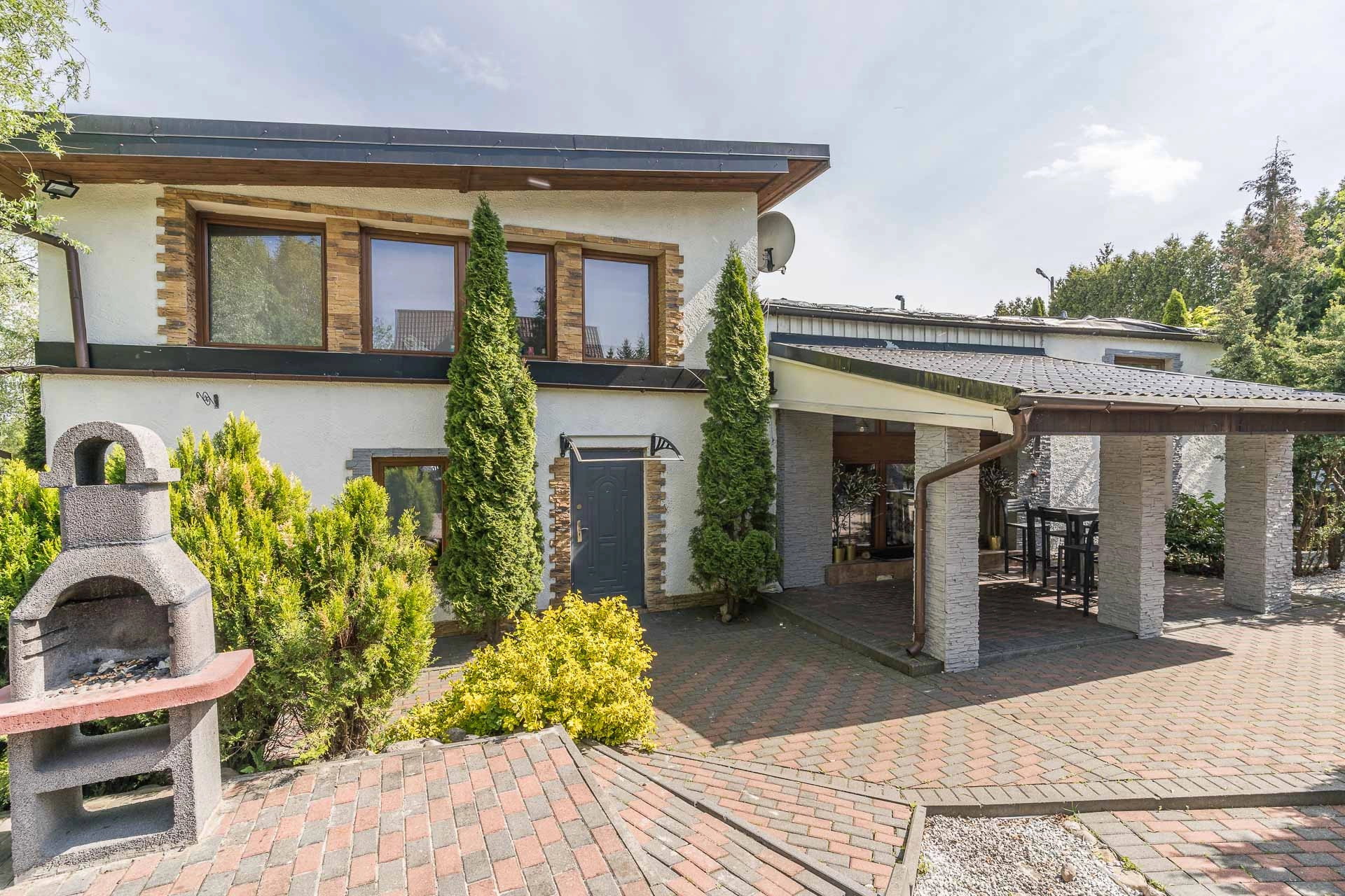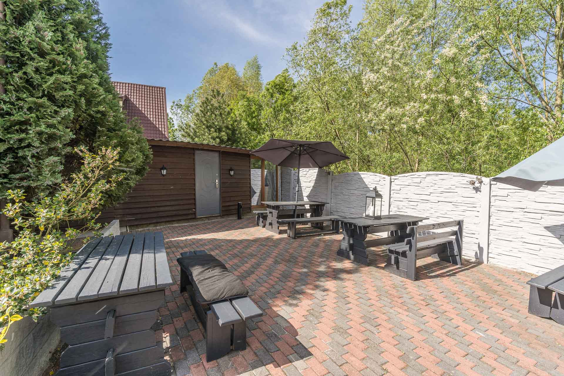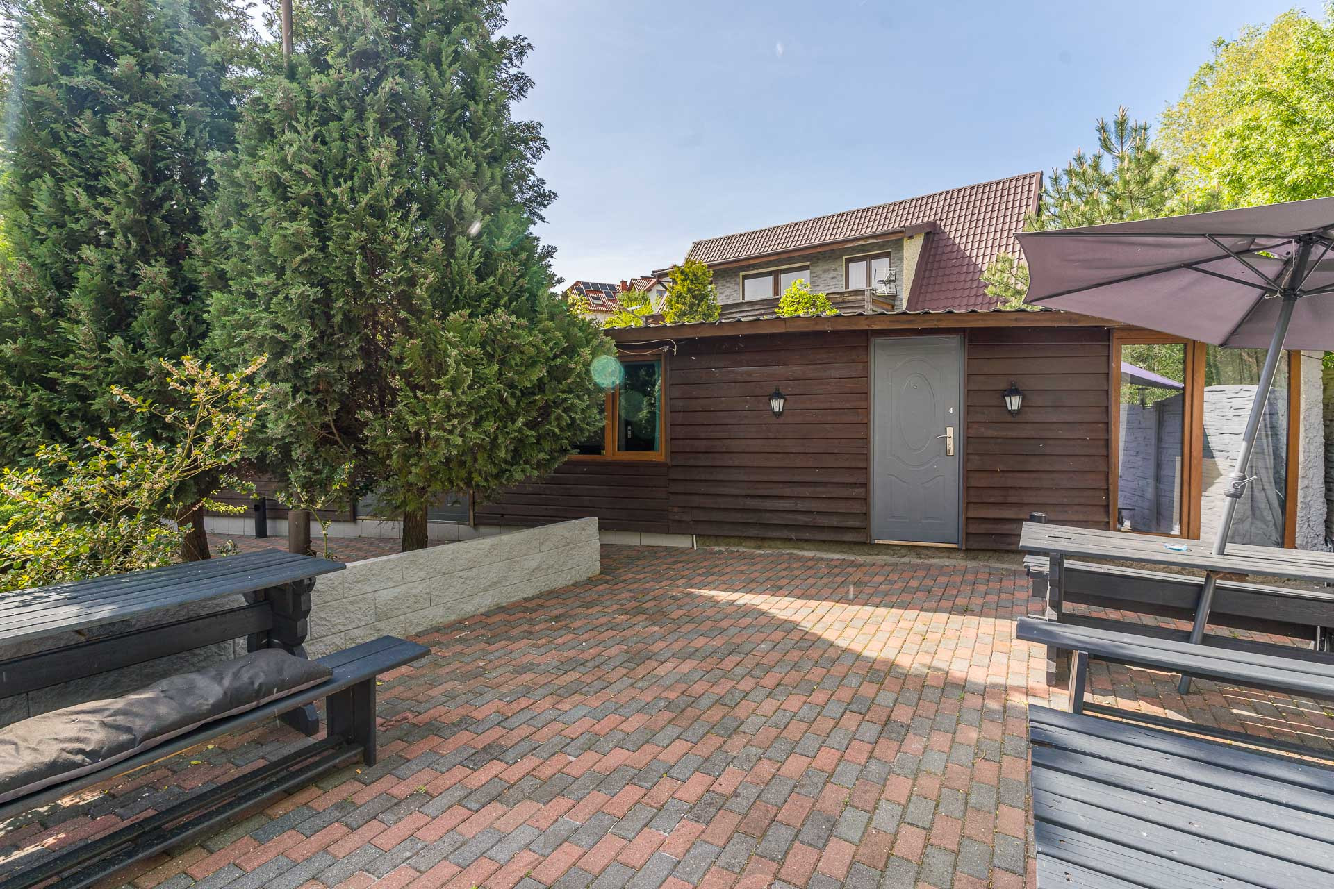 Przed obiektem znajduję się parking a także istnieje możliwość zaparkowania kilku aut za bramą wjazdową. Na tyłach obiektu znajduję się zadbana strefa relaksu, mały zadaszony taras oraz kilka ławeczek i dwa murowane grille. W ogrodzie znajduję się też spora wędzarnia „własnej roboty”.