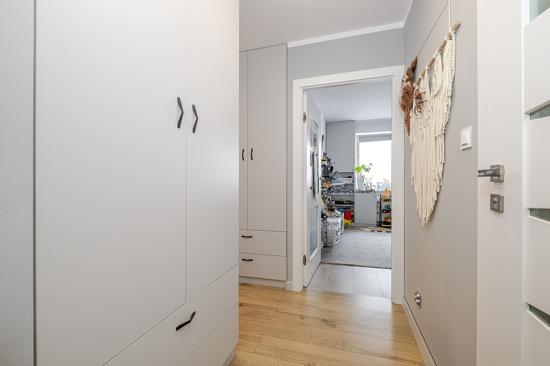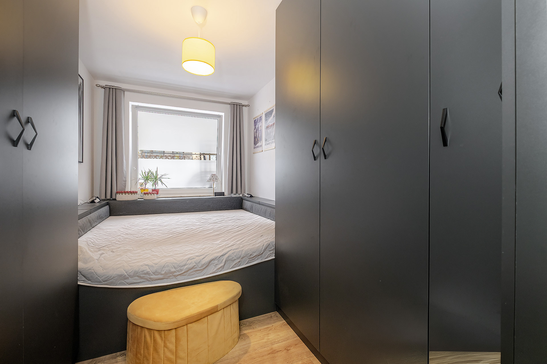 – sypialni z łóżkiem 180×200 w zabudowie, z dodatkową przestrzenią na przechowywanie;