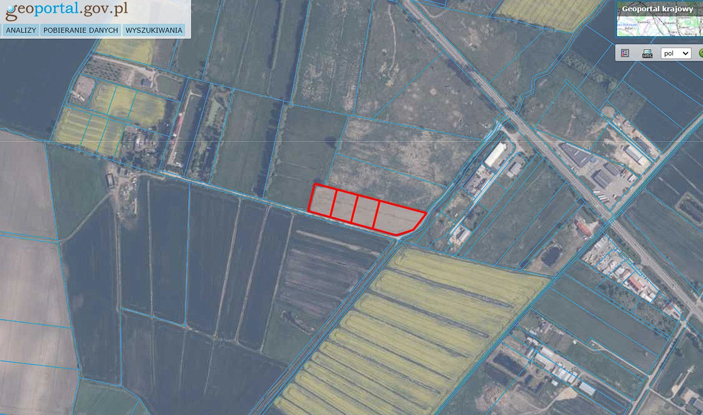 Dostępne są też sąsiednie 3 działki o numerach 111/4 (3000m2), 111/5 (3000m2) i 111/6 (5665m2). Wodociąg jest 220m od działki 111/3, natomiast prąd jest wzdłuż działki 111/6. Około 200m od omawianej działki. Klasa gruntu IV i V. Nie obowiązuje MPZP. Istnieje możliwość przekształcenia działek na przemysłowe na podstawie warunków zabudowy – informacja uzyskana w gminie.