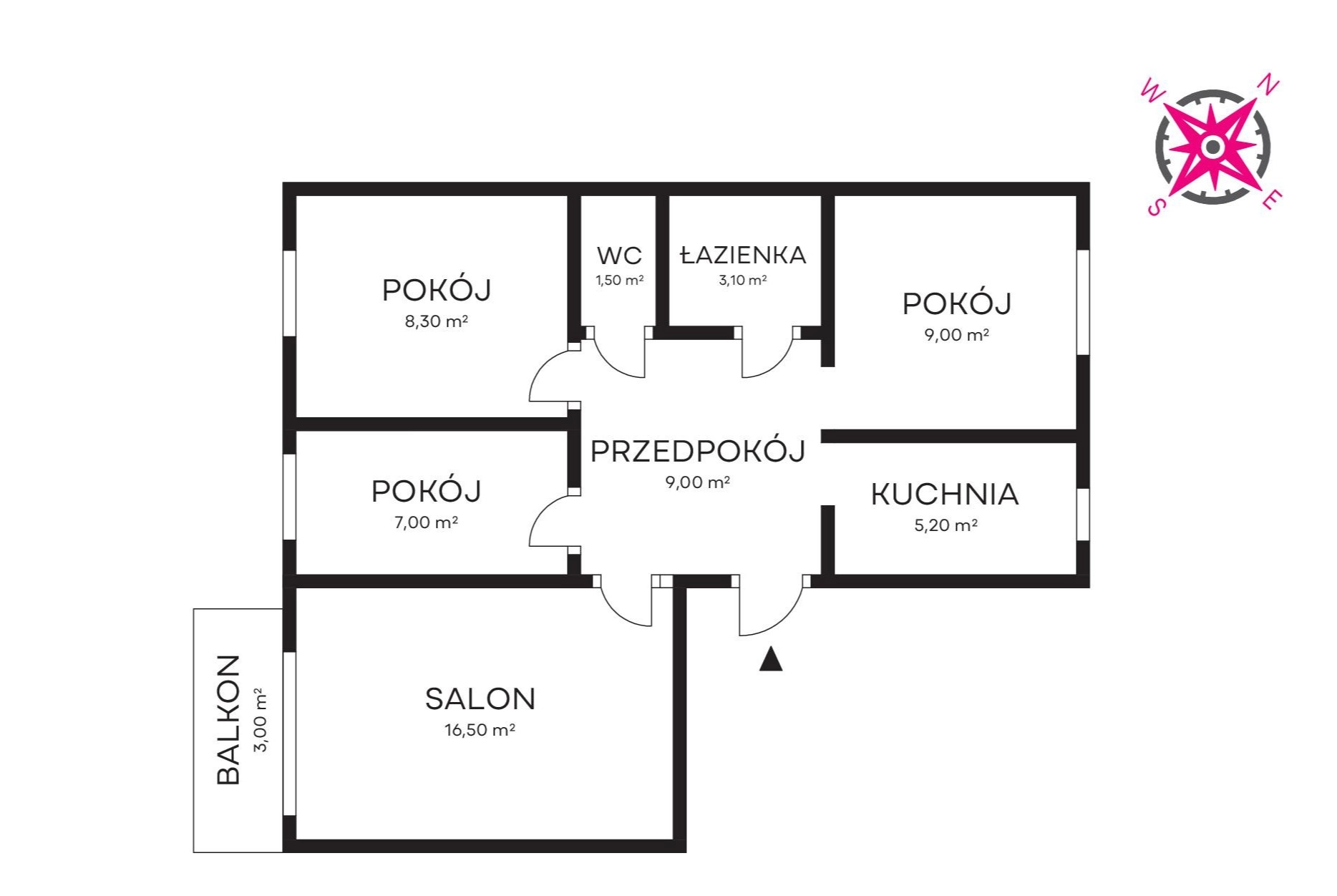 – 3x pokój (9 m2; 8,3 m2; 7 m2)