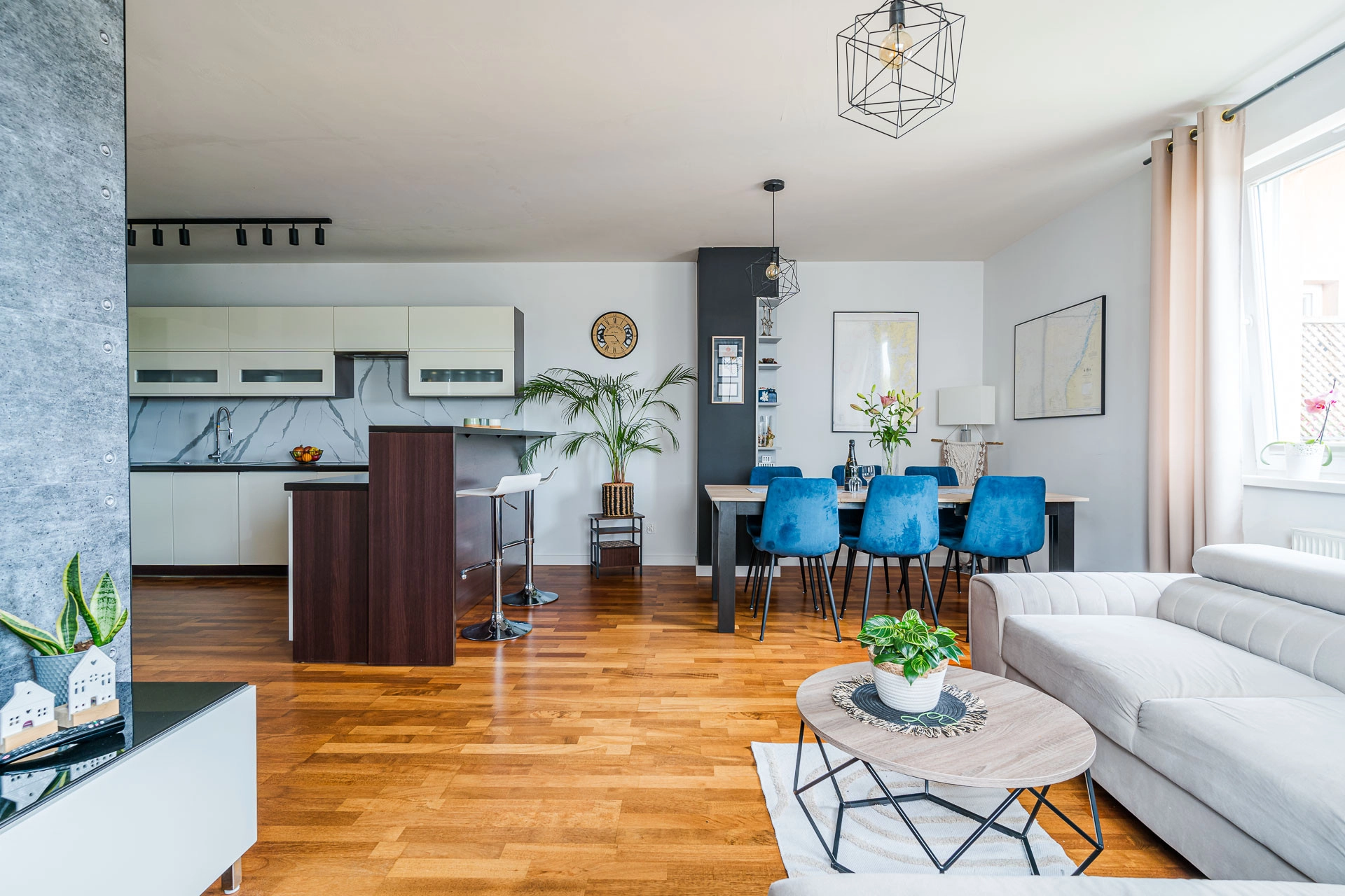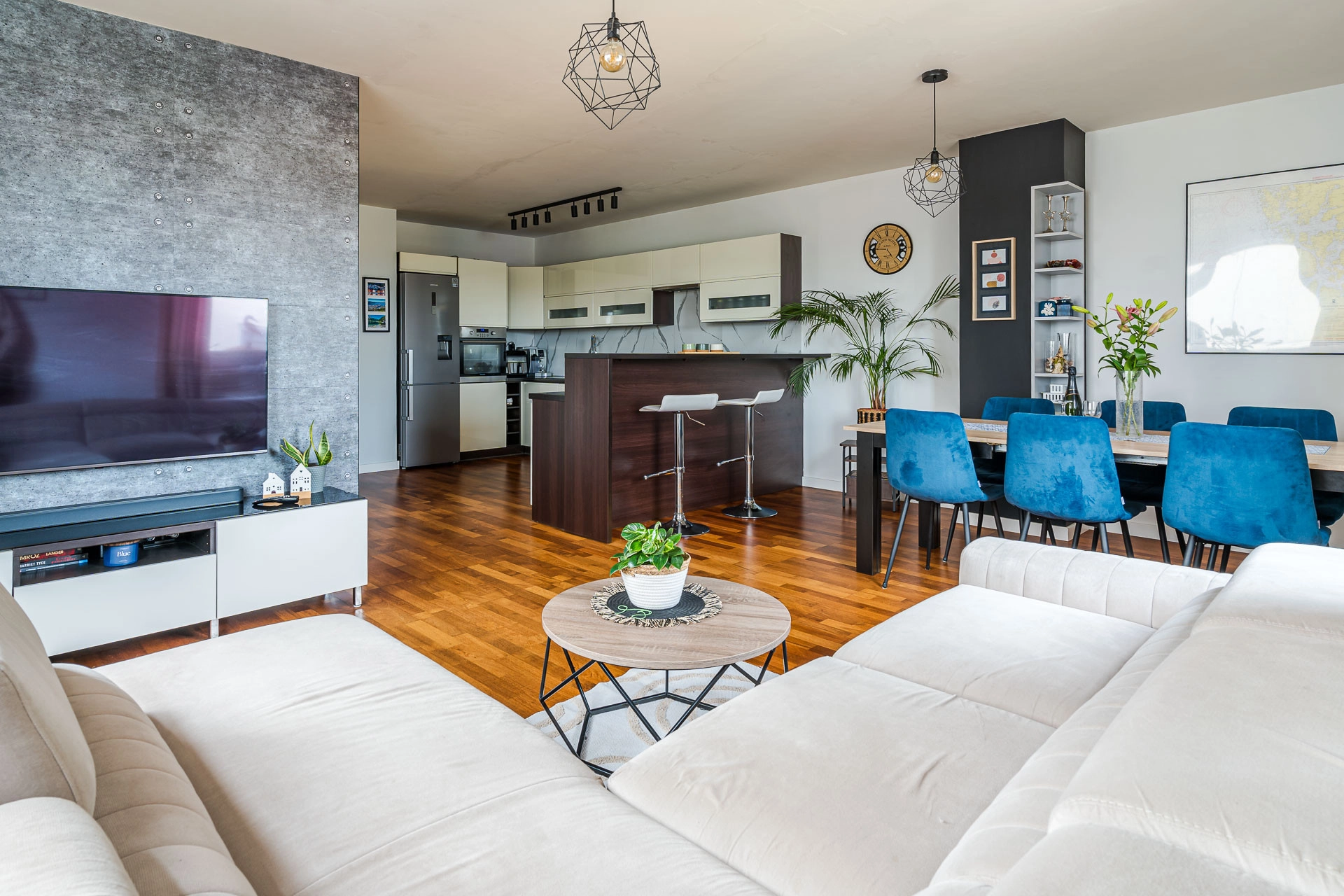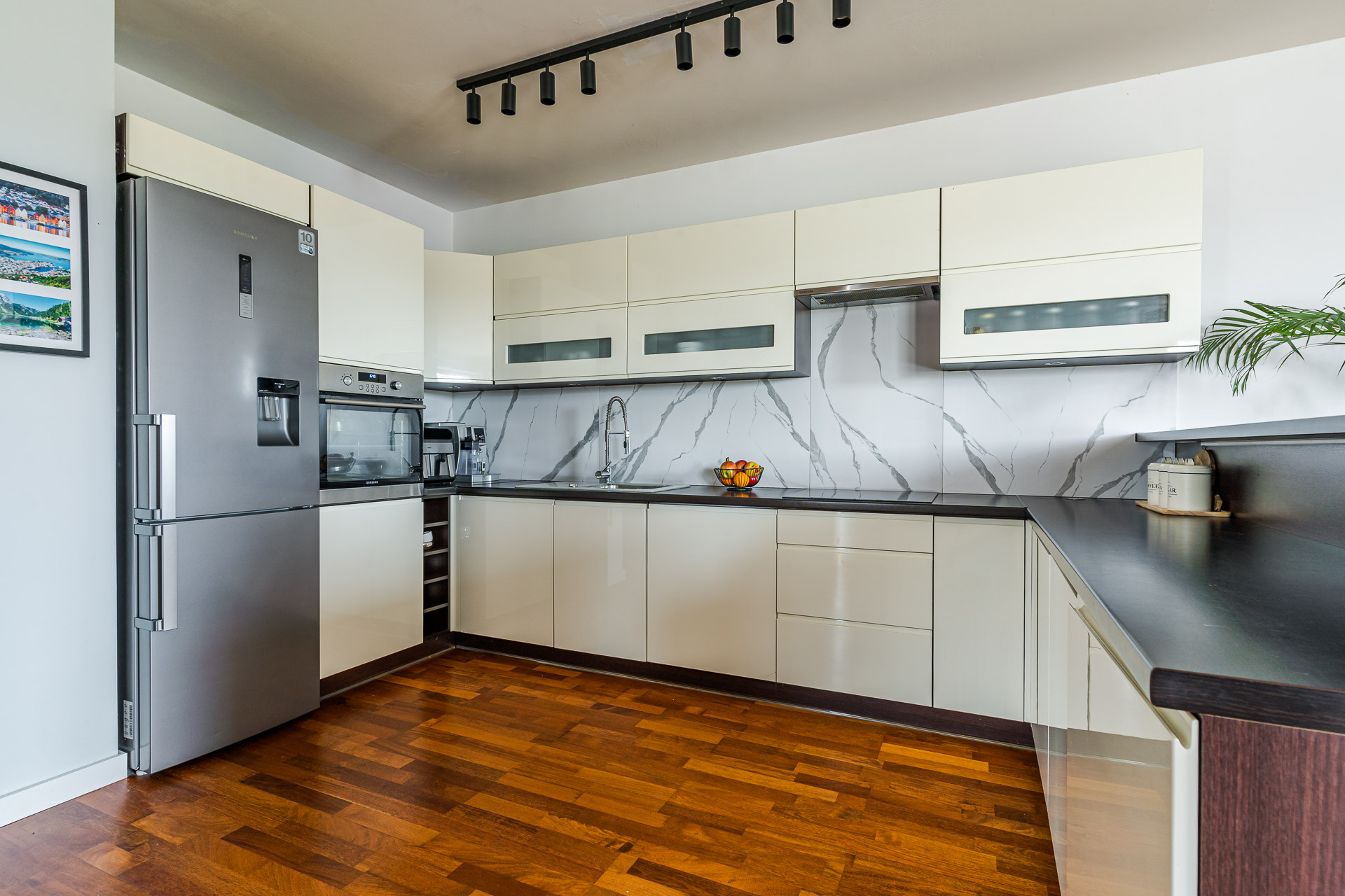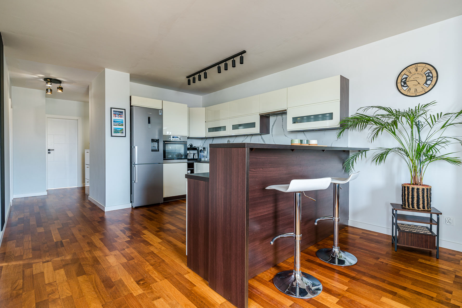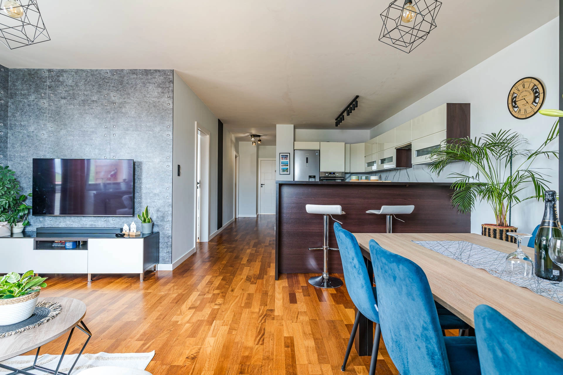 – salon z aneksem kuchennym (32,50 m2) oraz wyjściem na balkon (7,93 m2); aneks z meblami w zabudowie oraz wyposażeniem w sprzęt AGD,