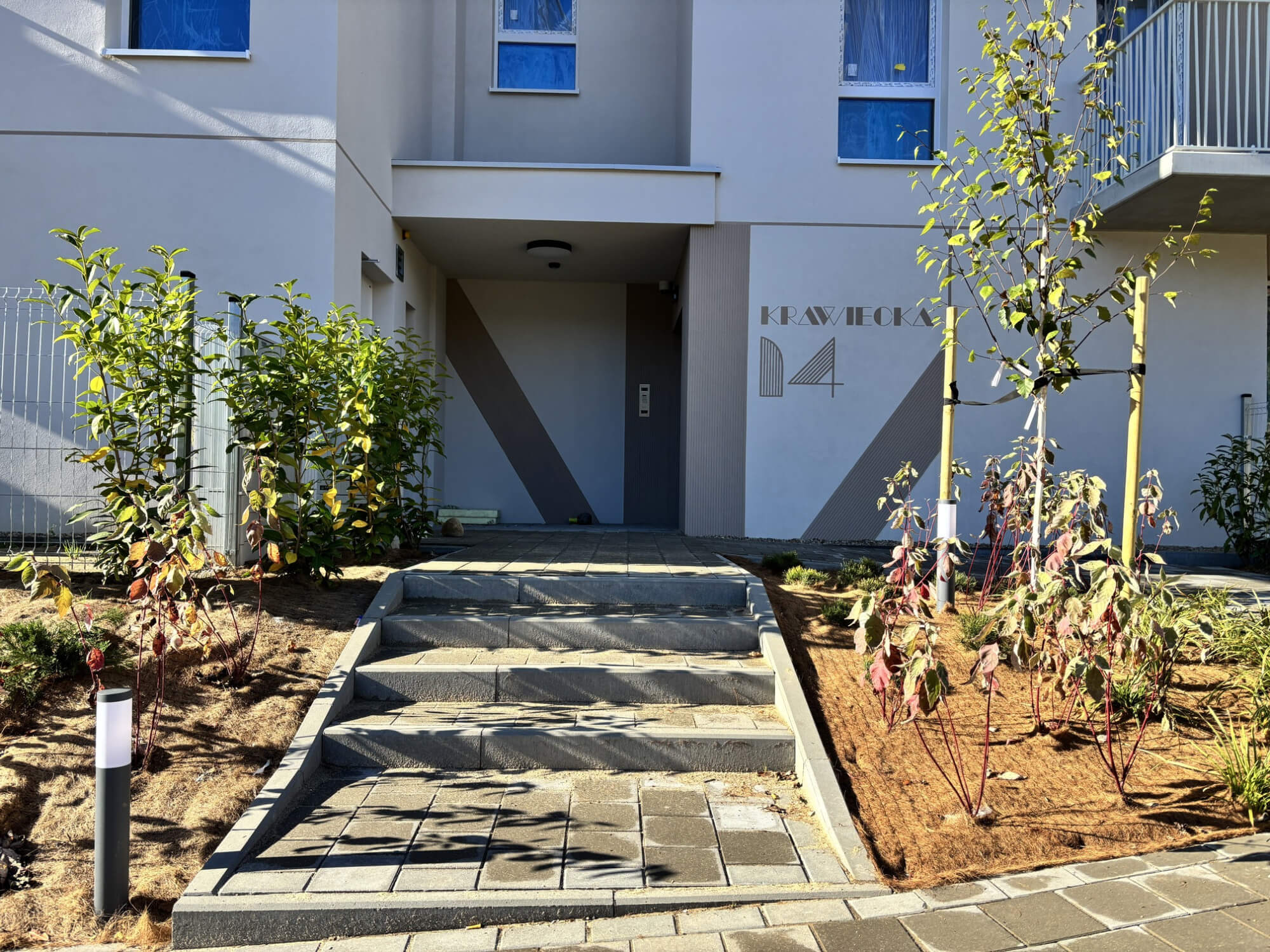 Budynek z 2025r. 3 piętrowy, składający się z 28 mieszkań. W budynku znajdziemy wspólną przestrzeń dla mieszkańców, siłownie, stojaki na rowery, w garażu podziemnym punkty ładowania pojazdów elektrycznych