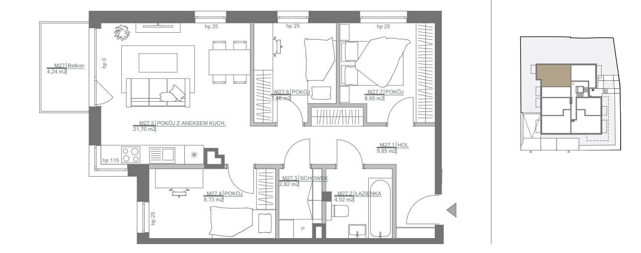 Mieszkanie na 3 piętrze 4 pokojowe o pow. 64,23m2 z balkonem