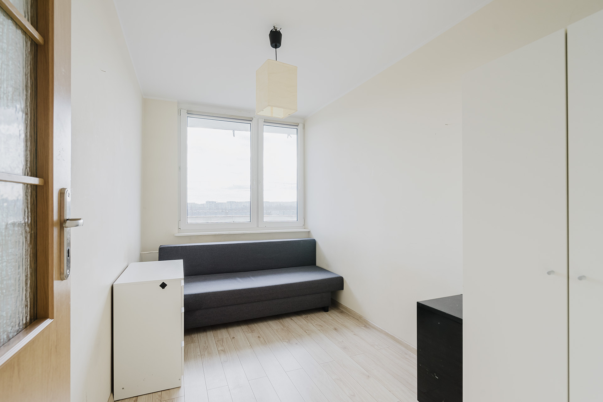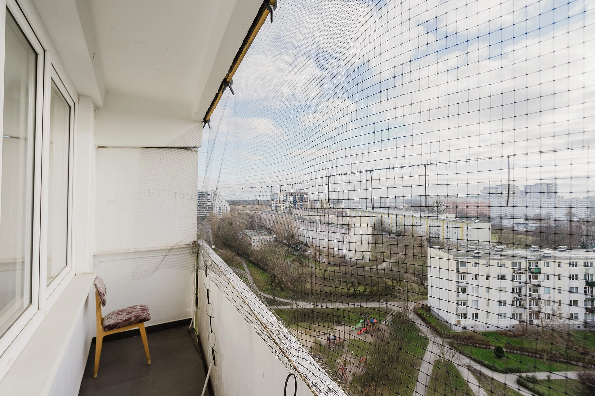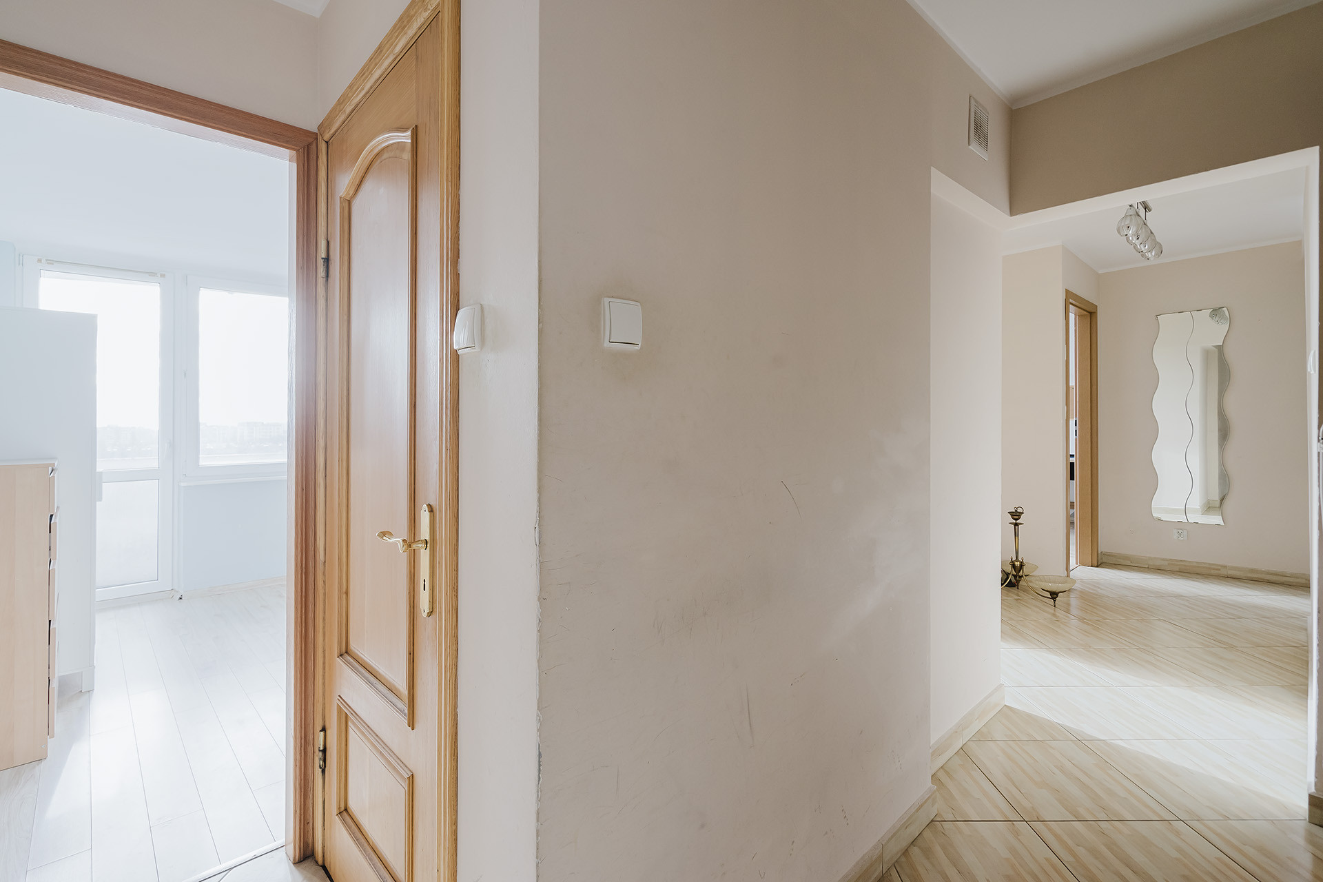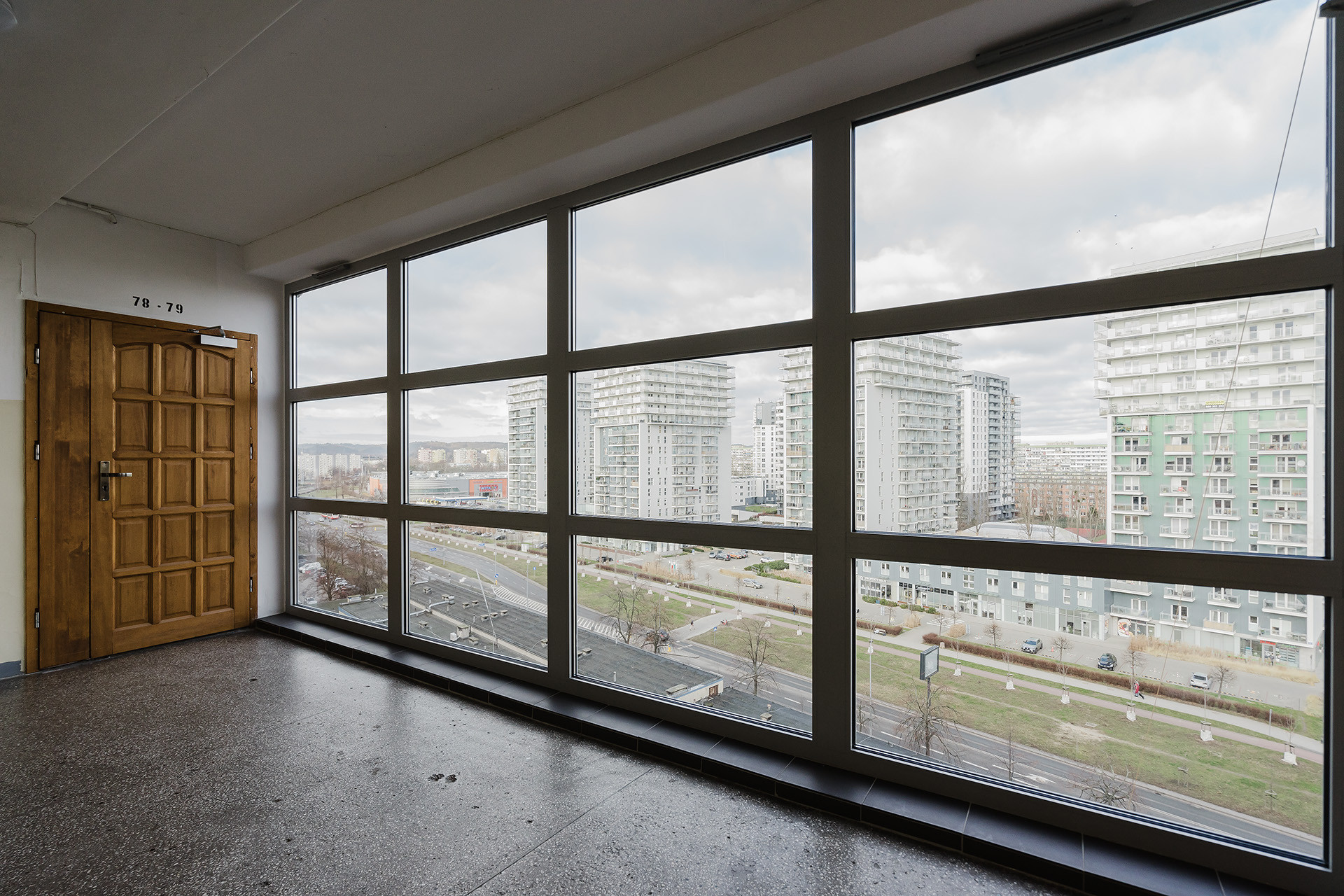 BUDYNEK: Mieszkanie mieści się na 9. piętrze w 10-piętrowym bloku wzniesionym w latach 70, który wykonano z wielkiej płyty, a dach pokryto papą. Ogólny stan całej nieruchomości należy uznać za dobry. Wejście do klatki schodowej zabezpieczone jest domofonem. Klatka jest czysta, szeroka i zadbana. Na poszczególne kondygnacje dostaniemy się też dzięki dwóm windom. W pobliżu nieruchomości znajdziemy ogólnodostępne miejsca postojowe.