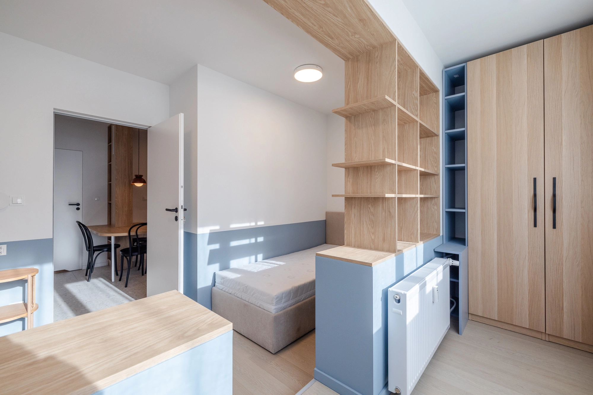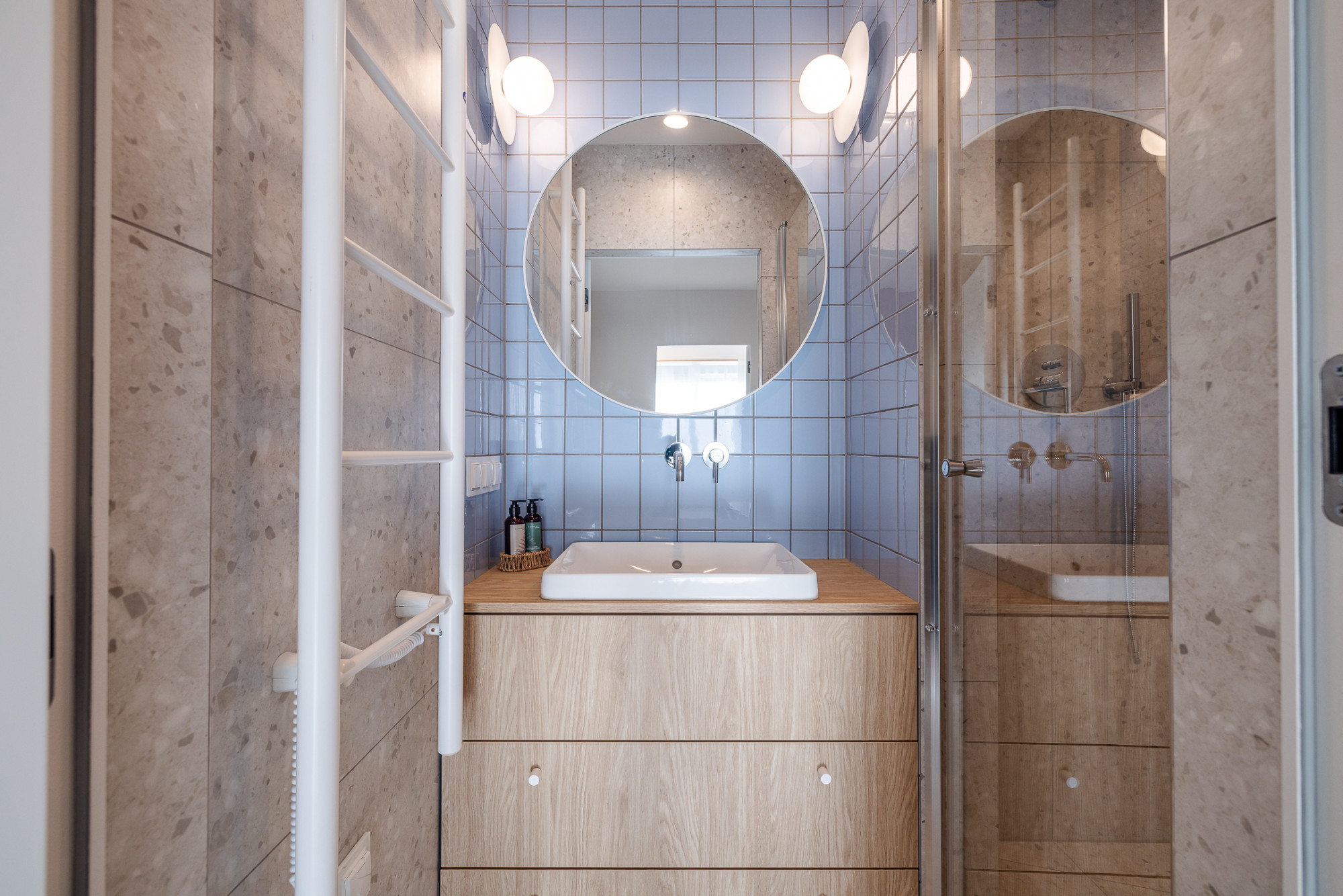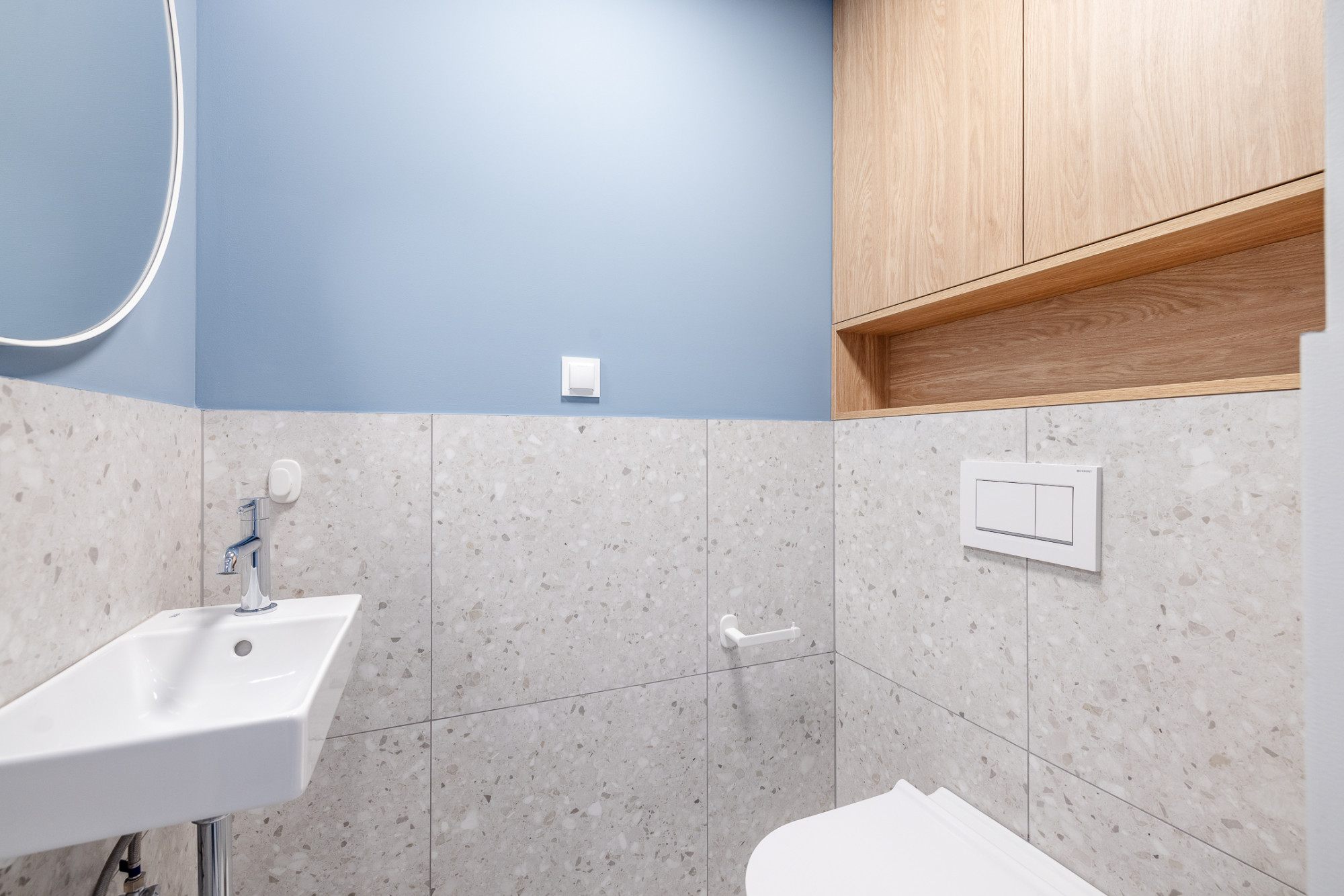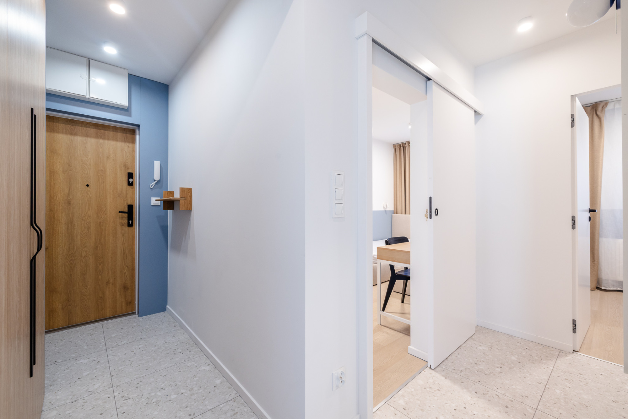 Każdy element wnętrza zaprojektowany został z myślą o komforcie użytkowników i łatwym utrzymaniu czystości. Nowoczesne wykończenie w neutralnych barwach sprawia, że wnętrze jest uniwersalne i gotowe do natychmiastowego użytku – zarówno do zamieszkania, jak i pod wynajem.