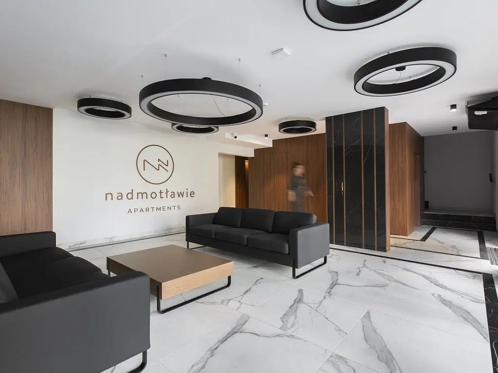 BUDYNEK: Mieszkanie znajduje się w inwestycji Nadmotławie, będącej dziełem dewelopera Robyg. Mieści się na 2 piętrze 5-piętrowego apartamentowca, który wzniesiono w 2022 roku przy użyciu cegły. Dach pokryto papą i elementami blaszanymi. Ogólny stan całej nieruchomości należy uznać za idealny. W budynku także portiernia oraz poczekalnia z przechowalnią bagażu. Całość monitorowana. Klatka schodowa jest czysta, zadbana, szeroka, a wejście do niej zabezpieczone domofonem. Na poszczególne kondygnacje dostaniemy się także dzięki cichobieżnej windzie. W pobliżu nieruchomości i w jej hali garażowej znajdziemy ogólnodostępne miejsca postojowe. Do wyłącznej dyspozycji mieszkańców także siłownia/fitness, sauny, sala zabaw dla dzieci.