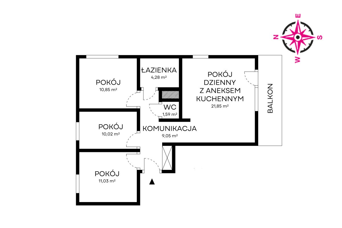 – 3 x sypialnia (11,03 m2; 10,85 m2; 10,11m2)