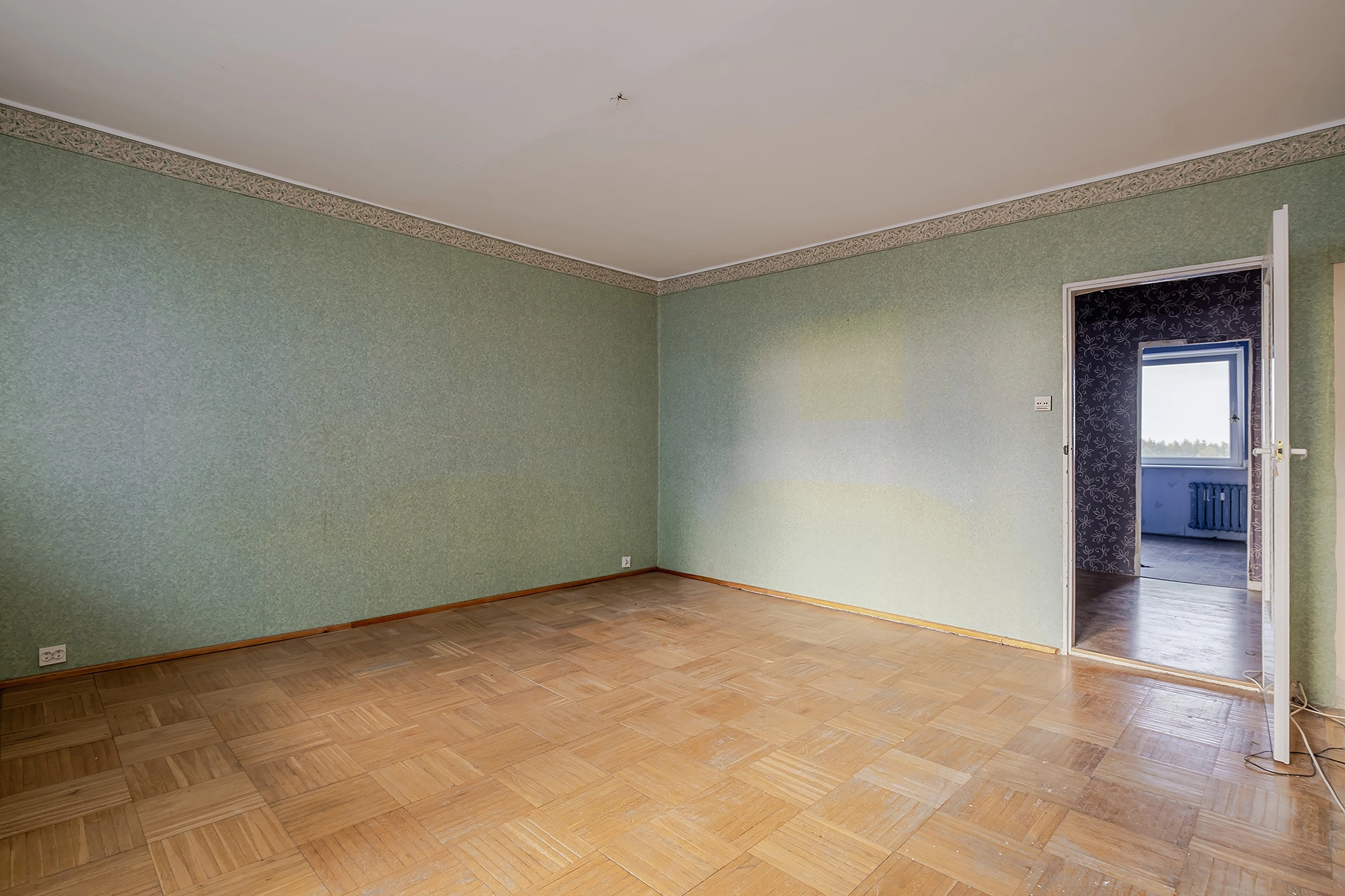 Na podłogach znajdziemy panele, parkiet oraz płytki. Przeznaczone jest do generalnego remontu.
