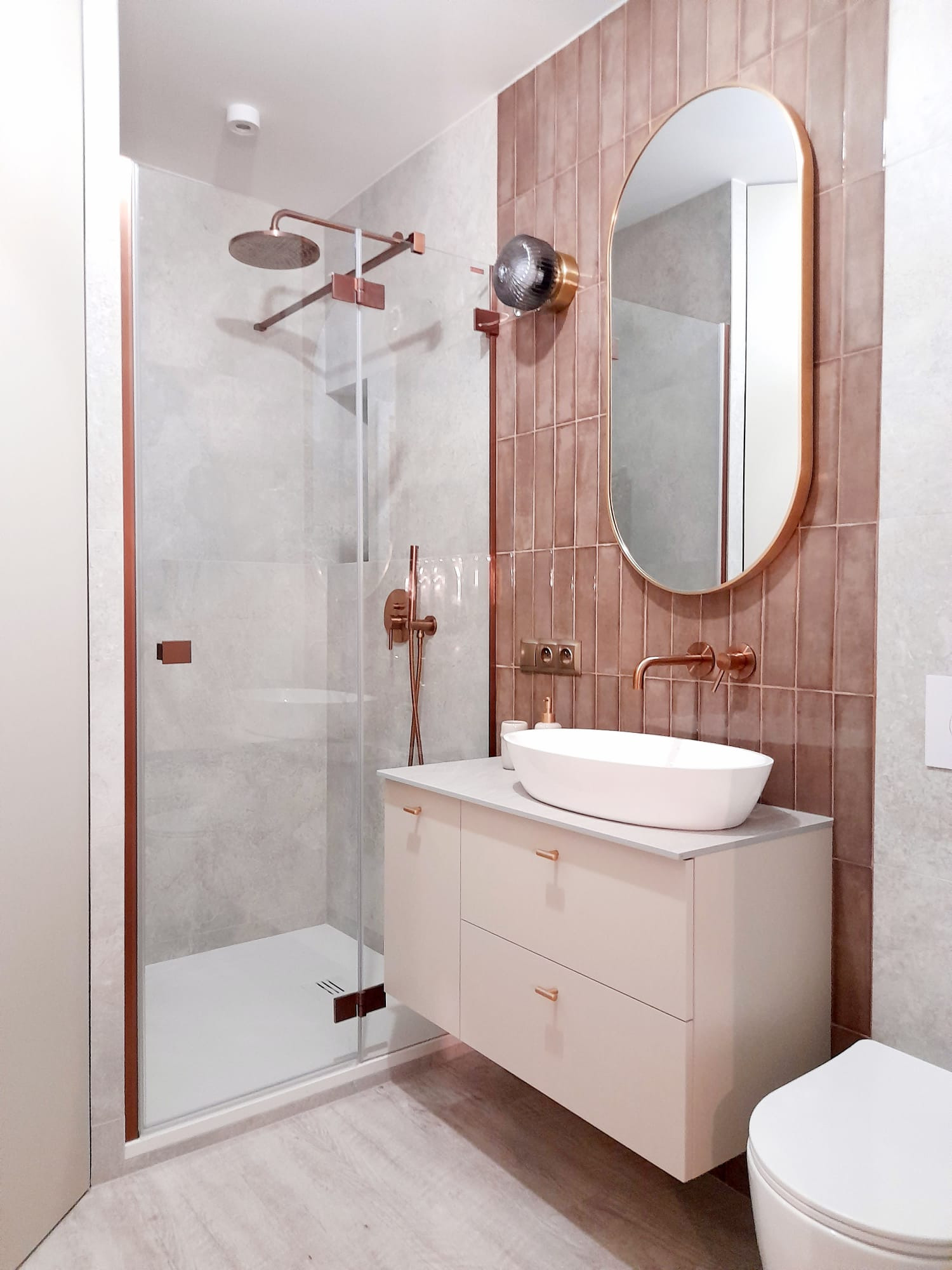 – łazienka: kabina prysznicowa, wc, umywalka, lustro, pralka, suszarka do włosów, suszarka na ubrania, deska do prasowania, żelazko,