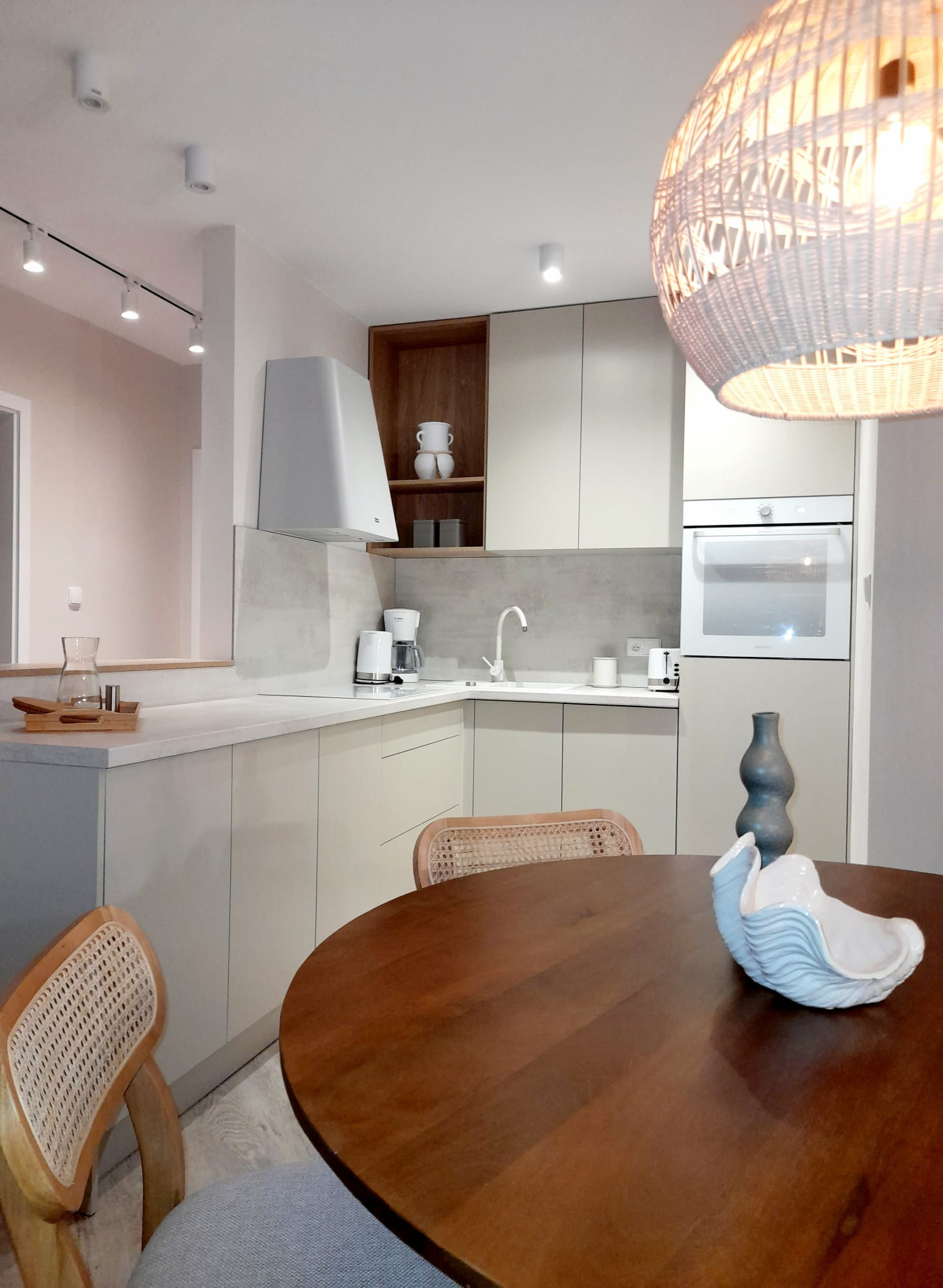 – aneks kuchenny: lodówka, podstawowe naczynia, płyta grzewcza, czajnik bezprzewodowy, kuchenka mikrofalowa, stół kuchenny, krzesełko do karmienia dzieci,