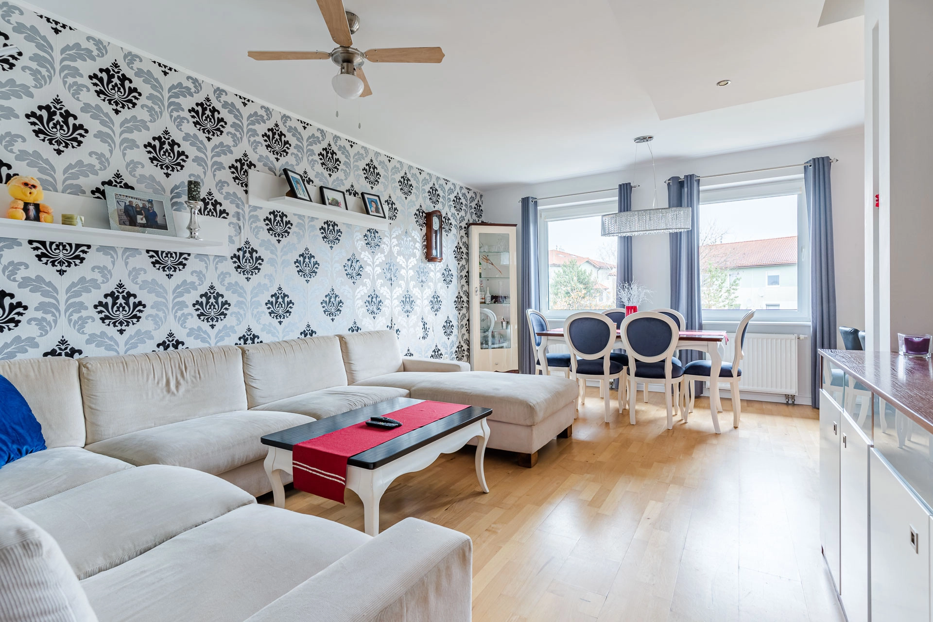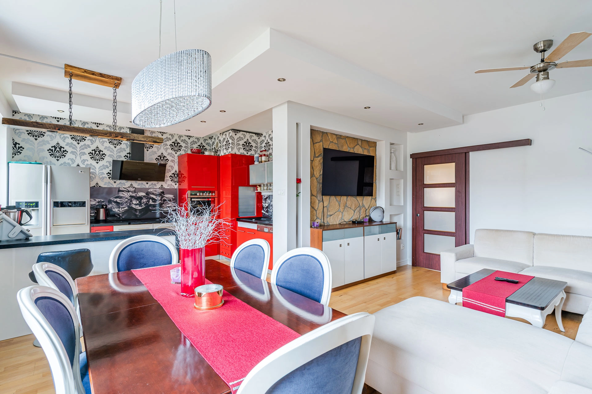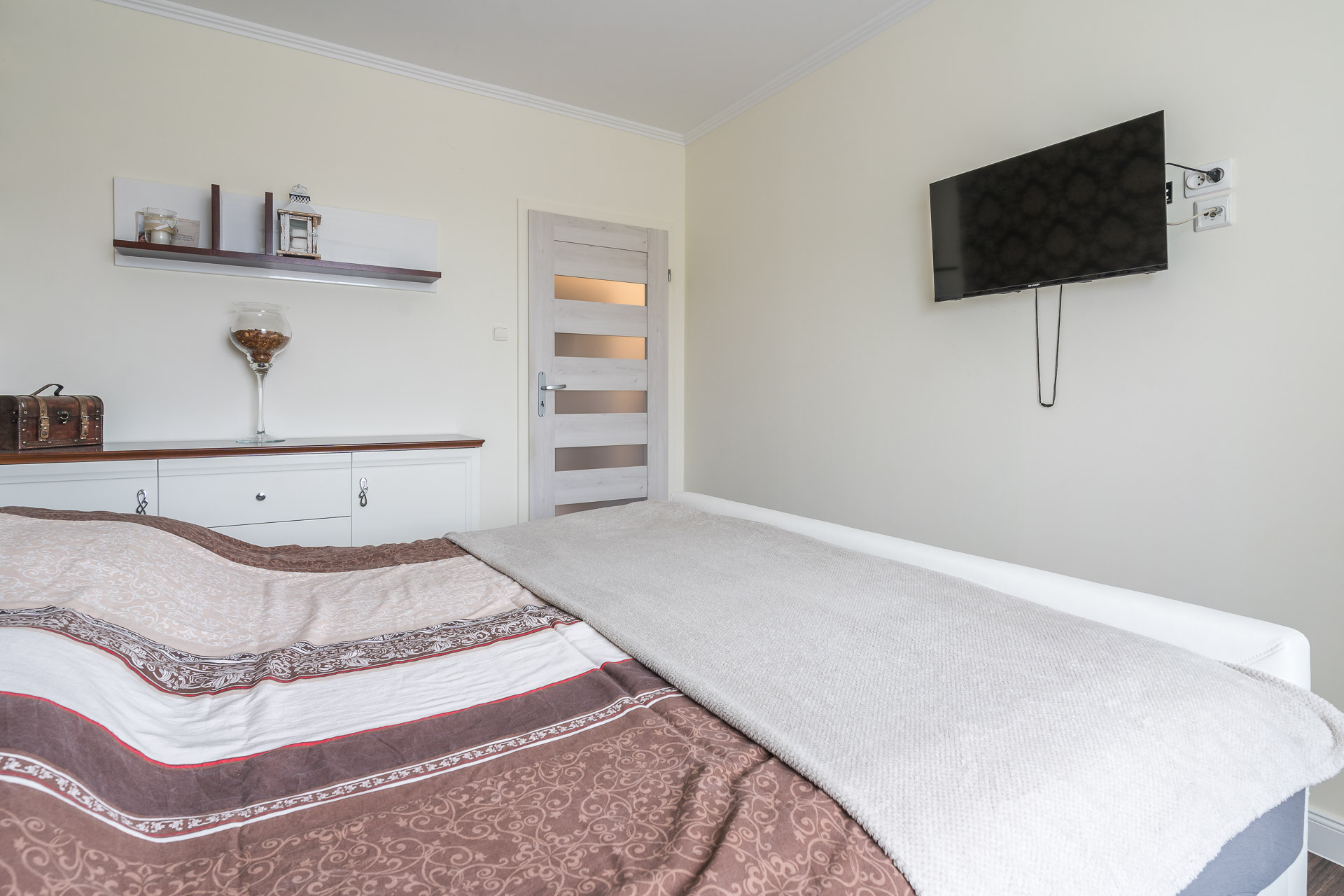 – przestronny salon z aneksem kuchennym i wyjściem na balkon,