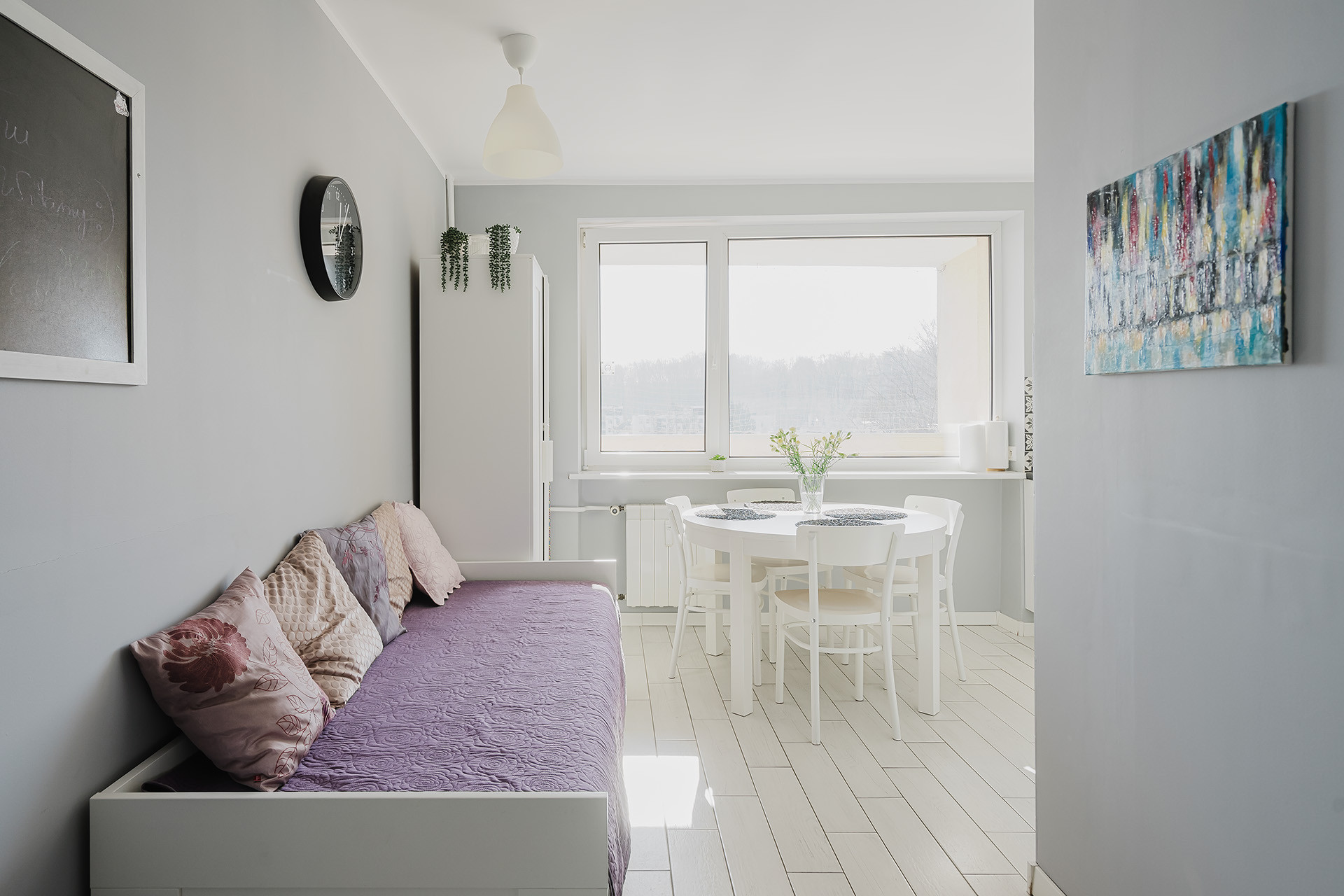 Mieszkanie usytuowane jest na ósmym piętrze – słoneczne, przestronne. Jego powierzchnia w księdze wieczystej wynosi 45,6 m² na którą składają się: