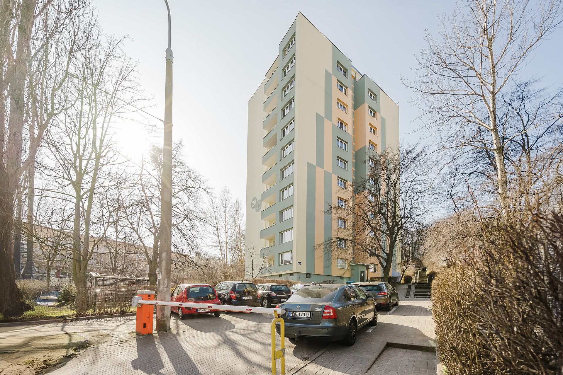 10-piętrowy budynek mieszkalny wzniesiony w ok. 1960 roku. Klatka schodowa, zadbana, zabezpieczona domofonem. Blok posiada osobne, prywatne podwórko, na które jest wjazd od ulicy Warszawskiej poprzez bramę sterowaną na pilota. Znajdują się tam miejsca postojowe do wyłącznego korzystania mieszkańców.