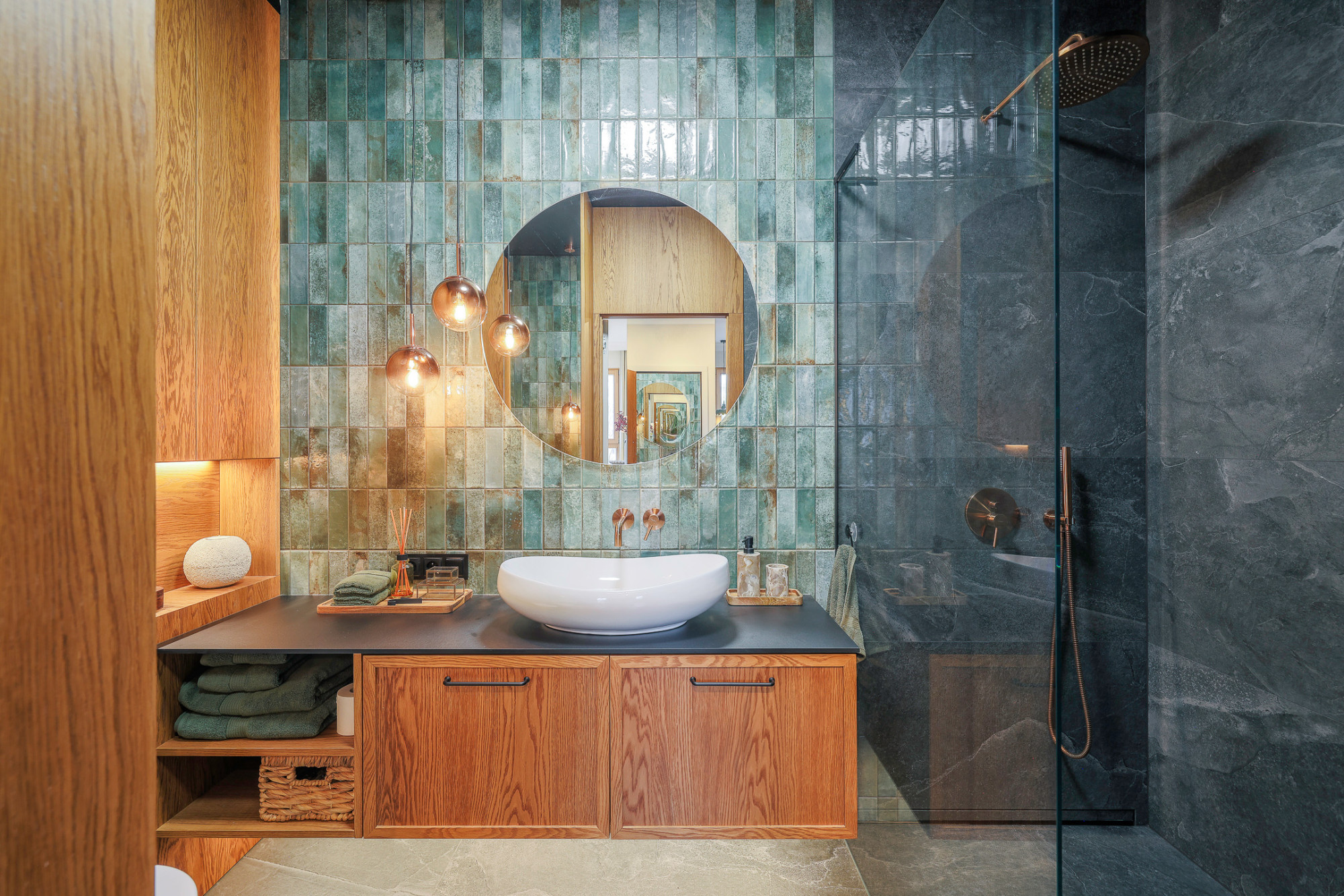 Łazienka 5 m2 – prysznic, baterie podtynkowe, zintegrowana zabudowa WC z szafką, bateria bidetowa