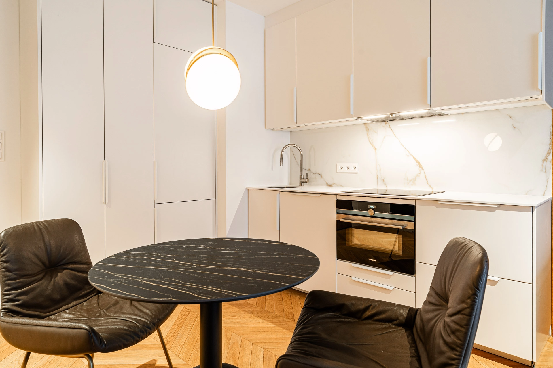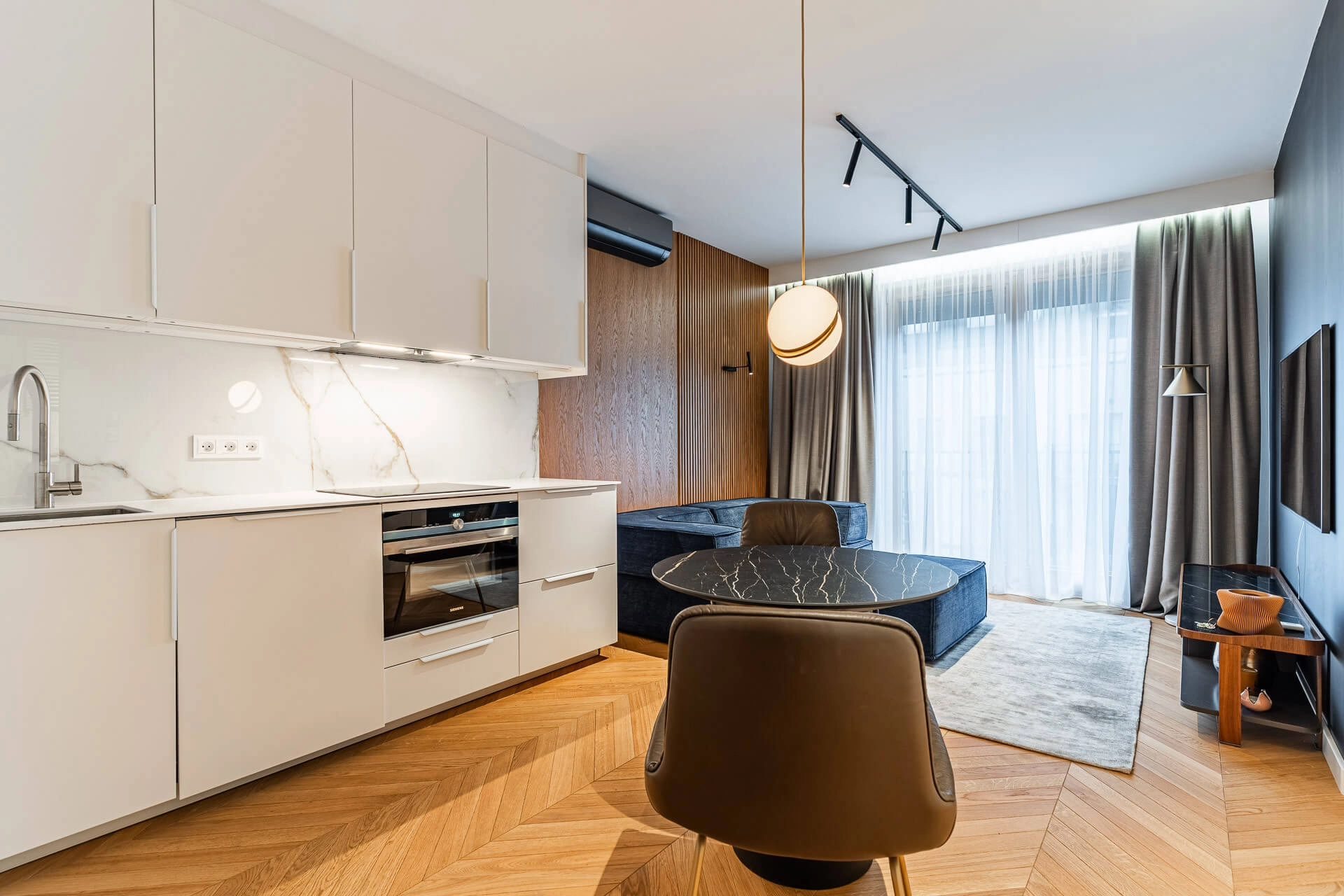Wyjątkowe mieszkanie wykończone w standardzie premium, z użyciem materiałów najwyższej jakości. Szlachetny dębowy parkiet olejowany tworzy elegancką bazę wnętrza, a starannie dobrane wyposażenie podkreśla jego prestiżowy charakter. W kuchni zastosowano sprzęt AGD marki Siemens, gwarantujący niezawodność i nowoczesny design. W części wypoczynkowej znajduje się kanapa COR oraz szafka RTV Ligne Roset – ikony współczesnego wzornictwa. Wszystkie zabudowy wykonano na indywidualne zamówienie przez stolarza, co zapewnia unikalny charakter i najwyższą jakość wykończenia.-Ogrzewanie i ciepła woda z sieci miejskiej + ogrzewanie podłogowe w łazience