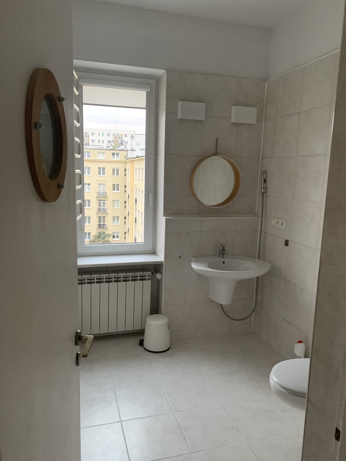 Mieszkanie przeszło jakiś czas temu remont, w trakcie którego wymieniono instalacje, stolarkę okienną, a także odnowiono (gładzenie, malowanie) ściany oraz położono nowe materiały na podłogę (panele, terakota). Mieszkanie bardzo wysokie ok. 3,2 m.