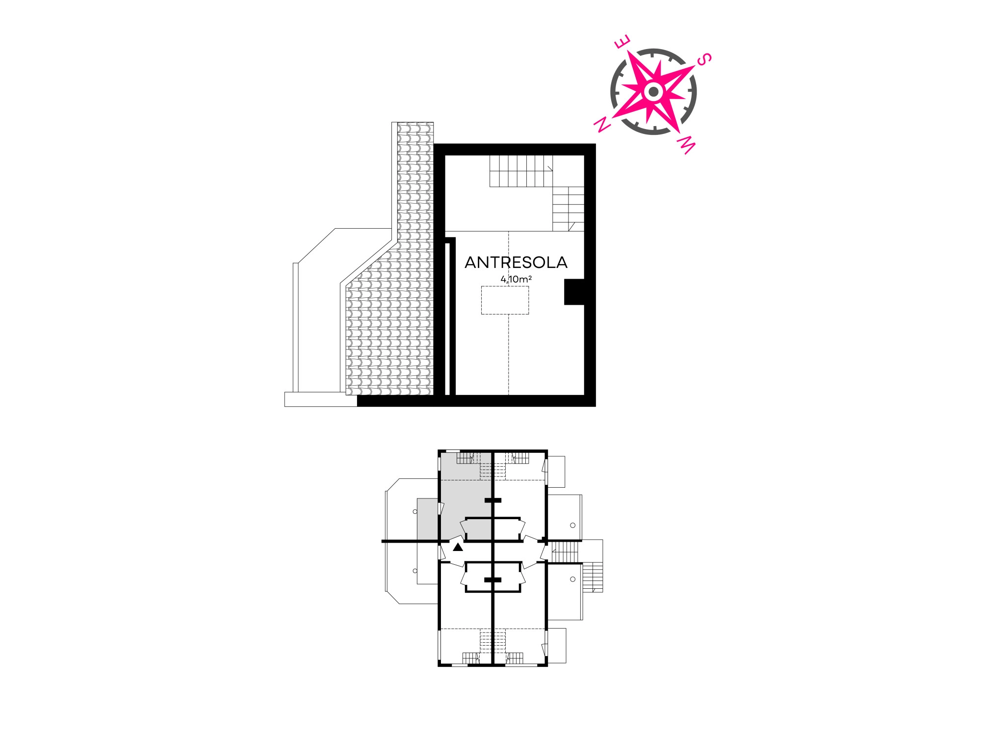 – antresoli z oknem dachowym o powierzchni całkowitej 13,75 m2, powierzchni użytkowej 4,10 m2,