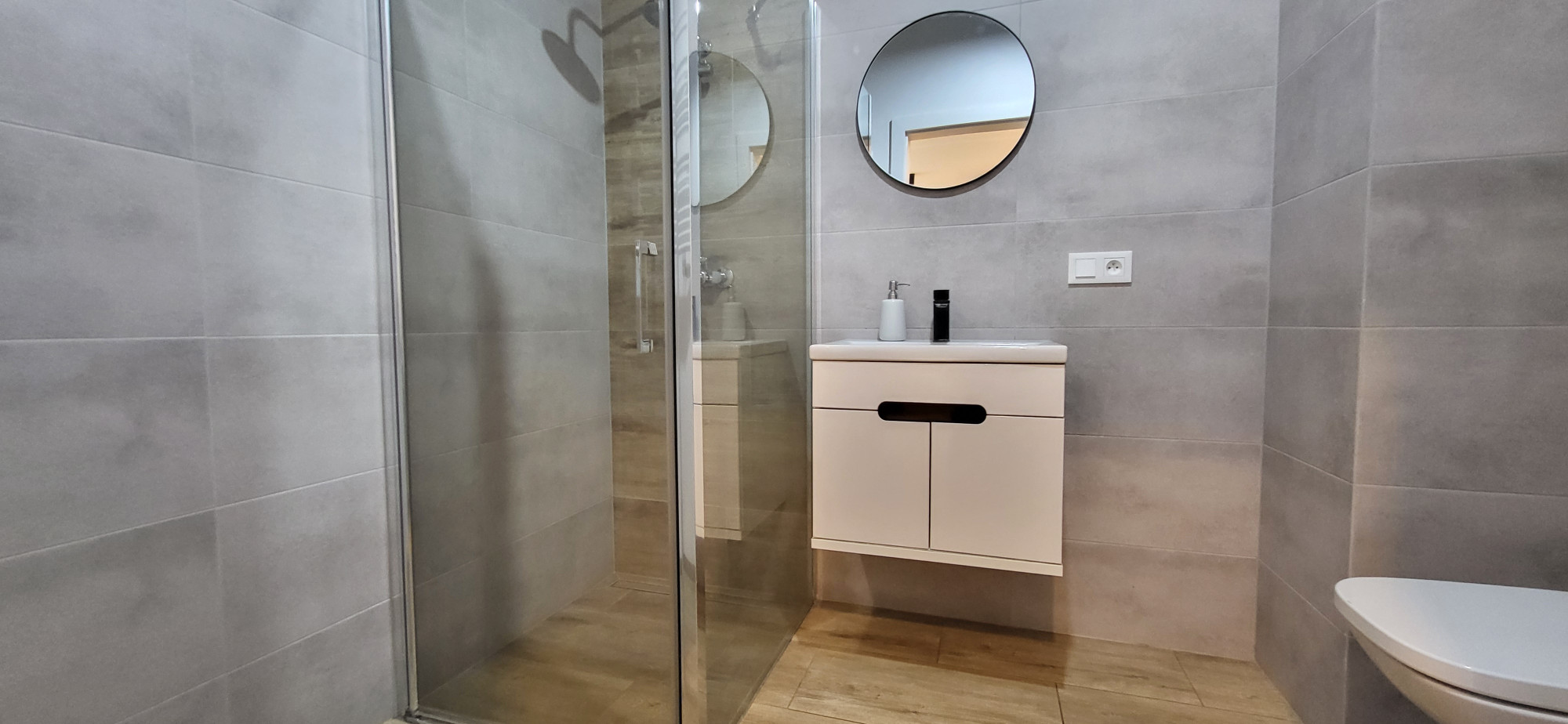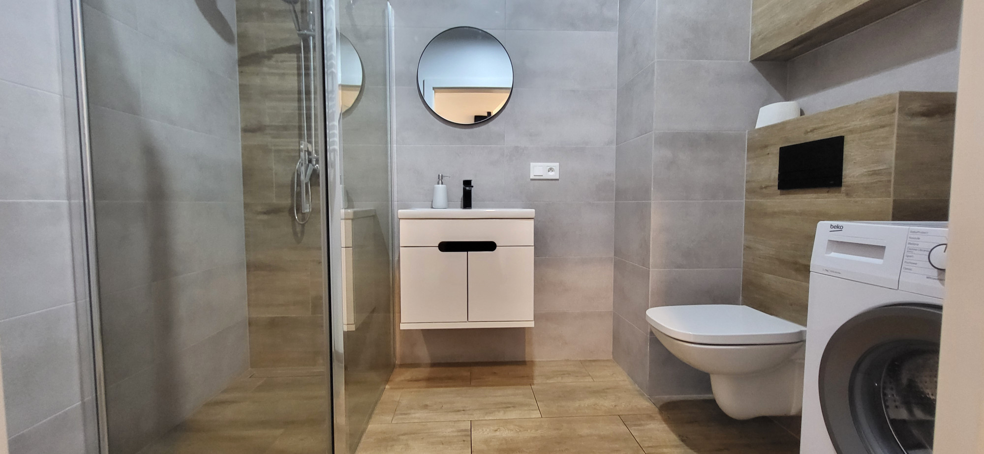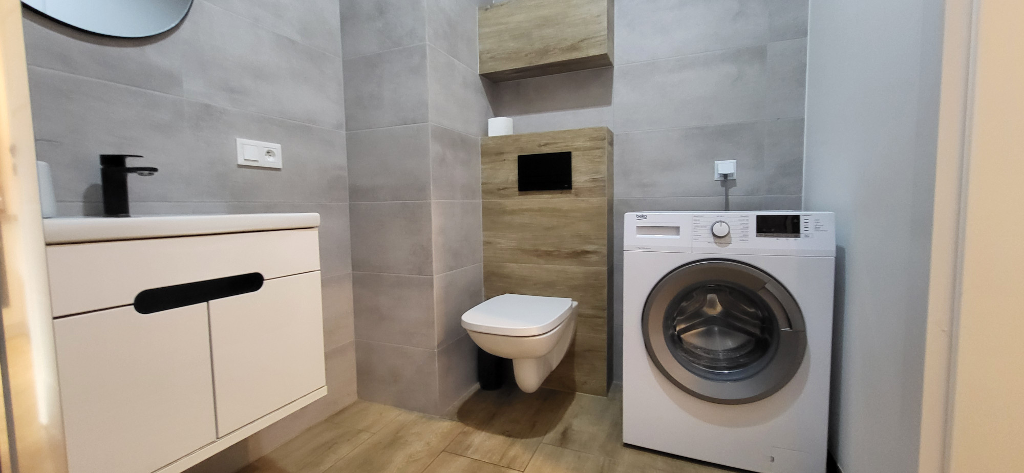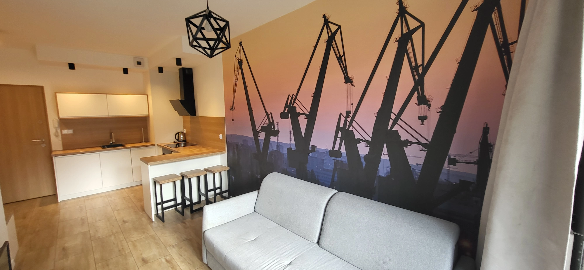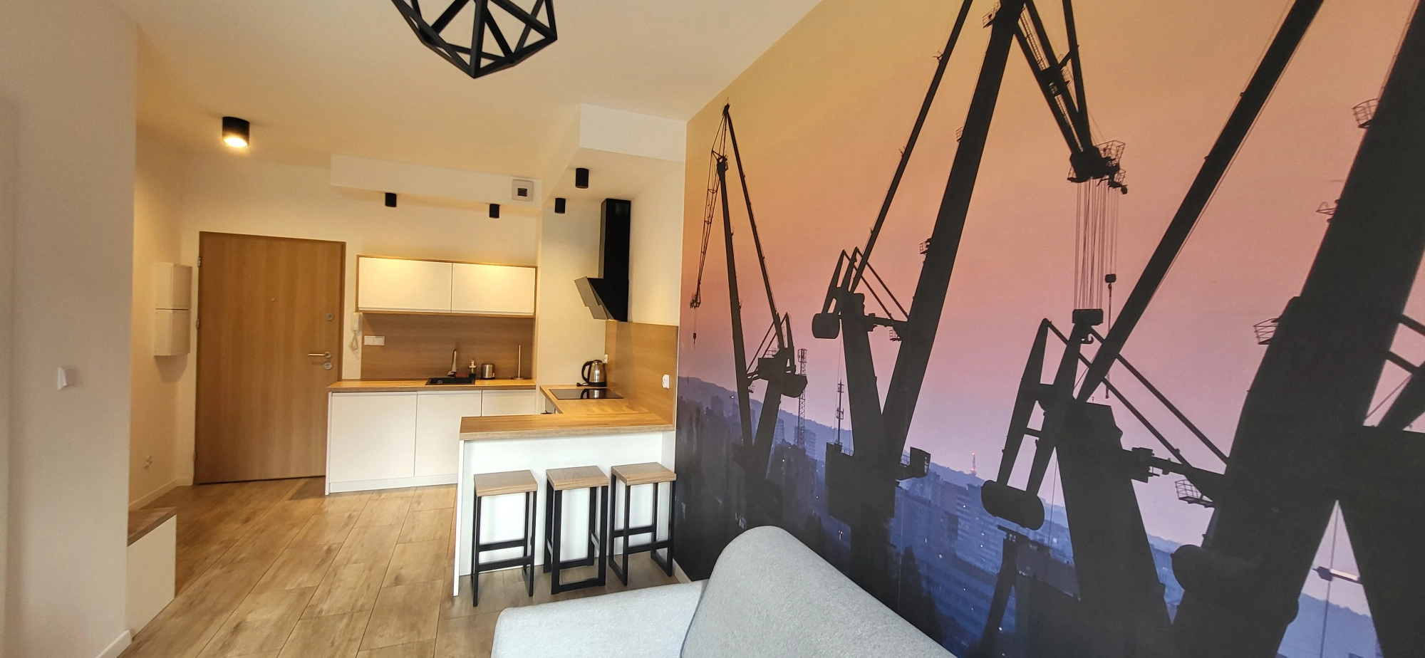 Apartament składa się z salonu z aneksem kuchennym z wyjściem na balkon, sypialni oraz łazienki z prysznicem.