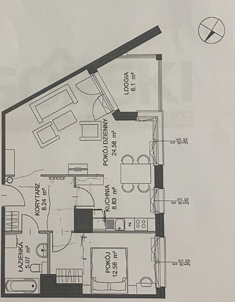– salon z aneksem kuchennym (24,58m2 + 8,83m2)