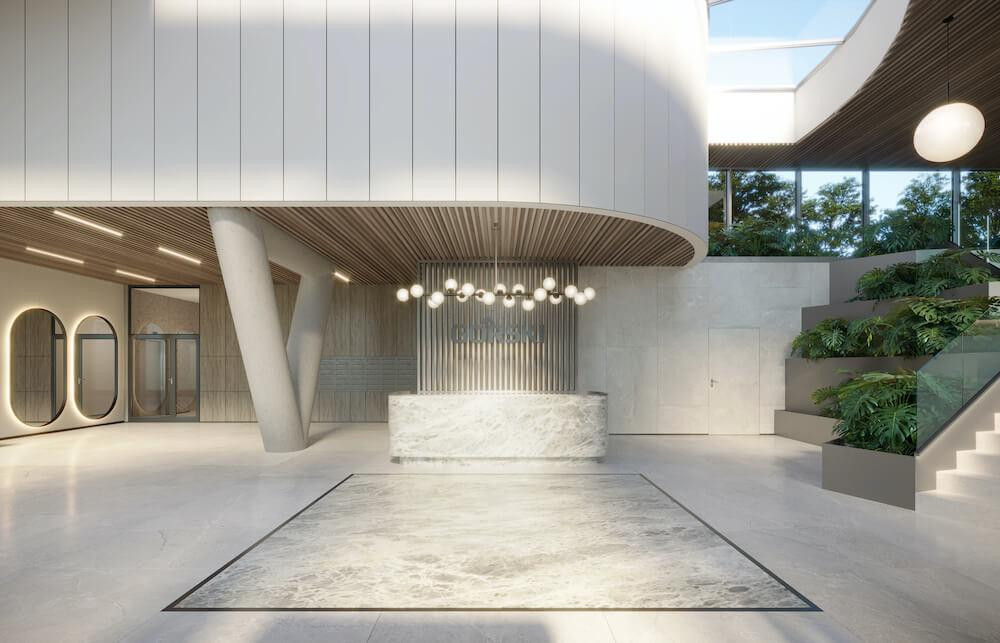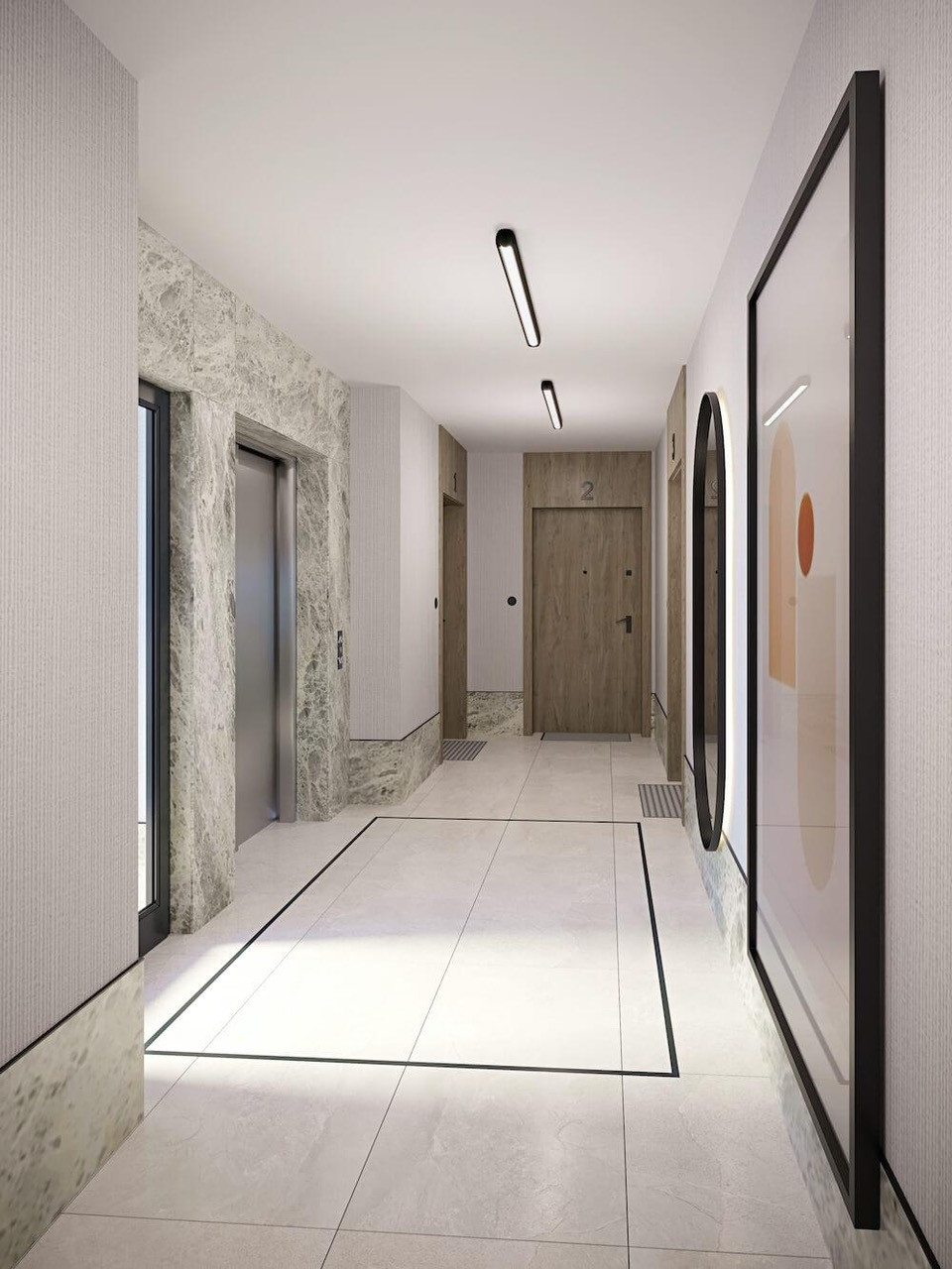 17- sto piętrowy apartamentowiec wzniesiony w 2023r. Wejść do budynku możemy dzięki drzwiom obrotowym, na przeciwko których znajduje się portiernia. Ogromne wrażenie robi zieleń otaczająca hol, a także przestrzeń wspólna dostępna wyłącznie dla mieszkańców. Ponad to w budynku znajduje się siłownia z częścią wypoczynkową oraz zieleń rekreacyjna na dachu garażu.
