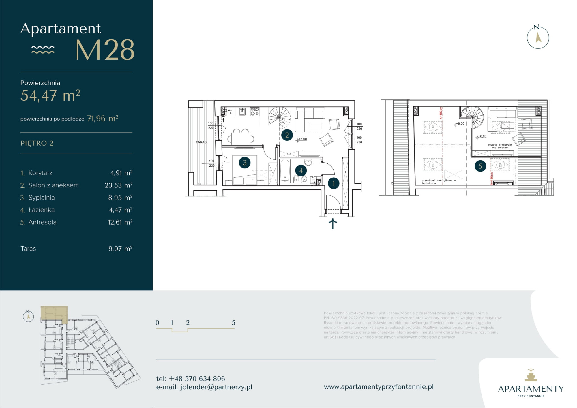 Na sprzedaż apartament z antresolą  o pow. 54,47 m2 ( po podłodze 71,96 m2  ) na drugim i trzecim piętrze budynku składający się z :
