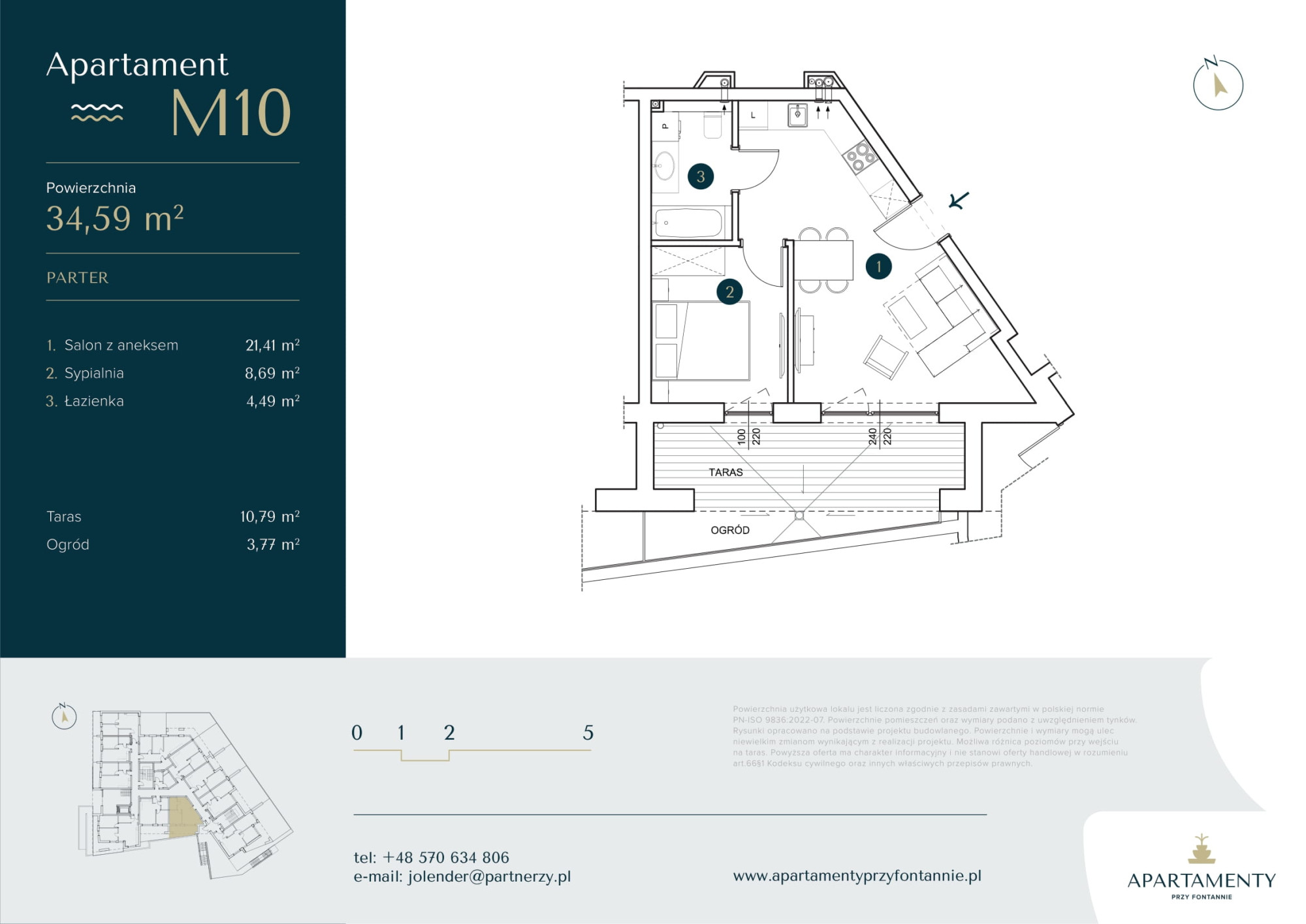 Na sprzedaż apartament o pow. 34,59 m2 na parterze budynku składający się z :