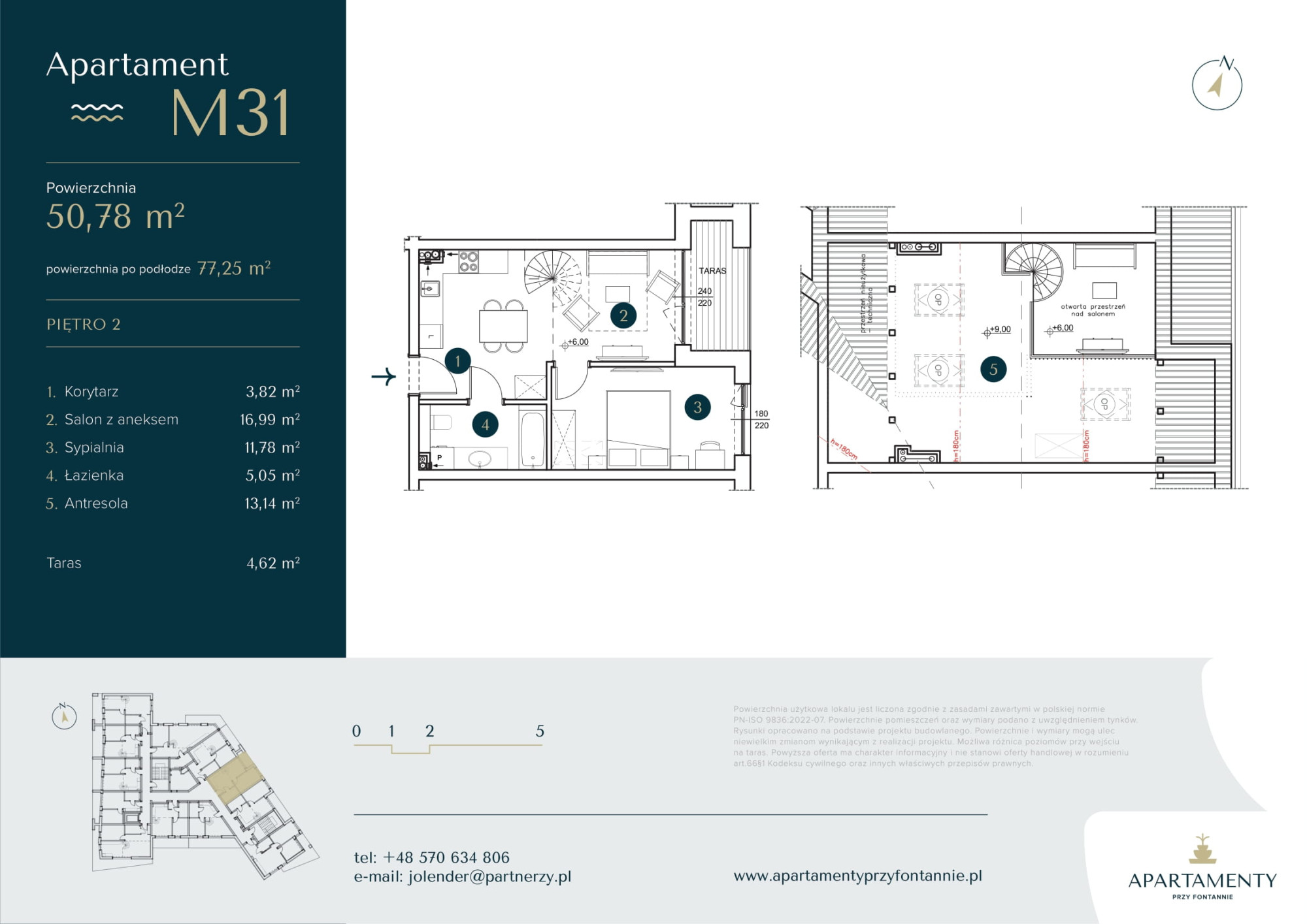 Na sprzedaż apartament  z antresolą o pow. 50,78 m2 ( po podłodze 77,25 m2 ) na drugim i trzecim piętrze budynku składający się z :