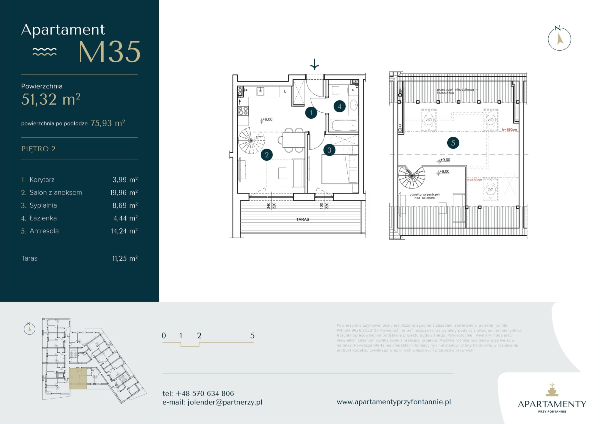 Na sprzedaż apartament z antresolą o pow. 51,32 m2 ( po podłodze 75,93 m2 ) na drugim i trzecim piętrze budynku składający się z :