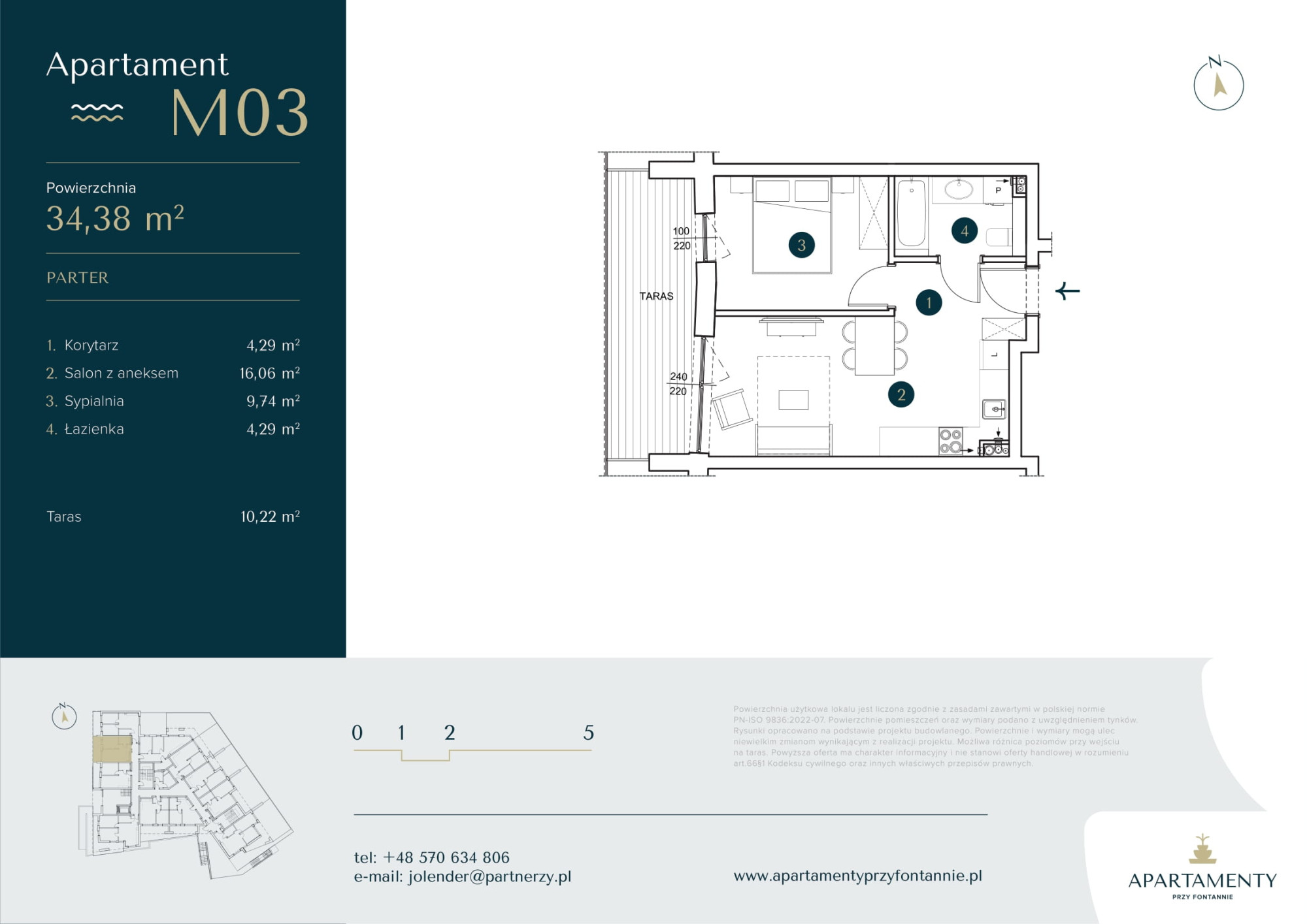 Na sprzedaż apartament o pow. 34,38 m2 na parterze budynku składający się z :