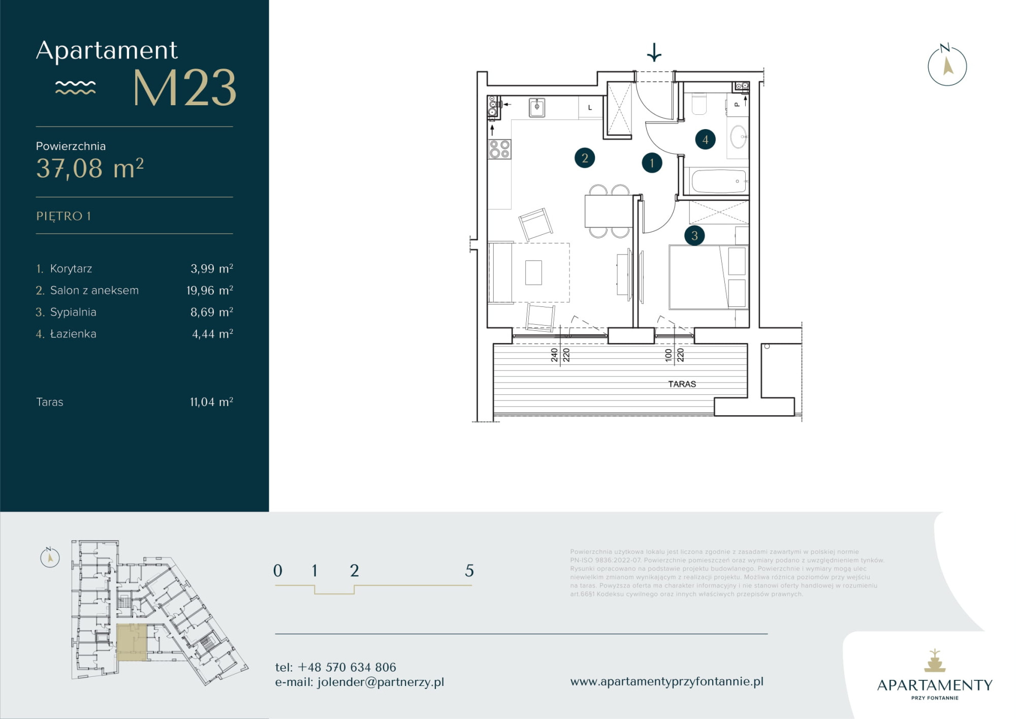 Na sprzedaż apartament o pow. 37,08 m2 na pierwszym piętrze budynku składający się z :