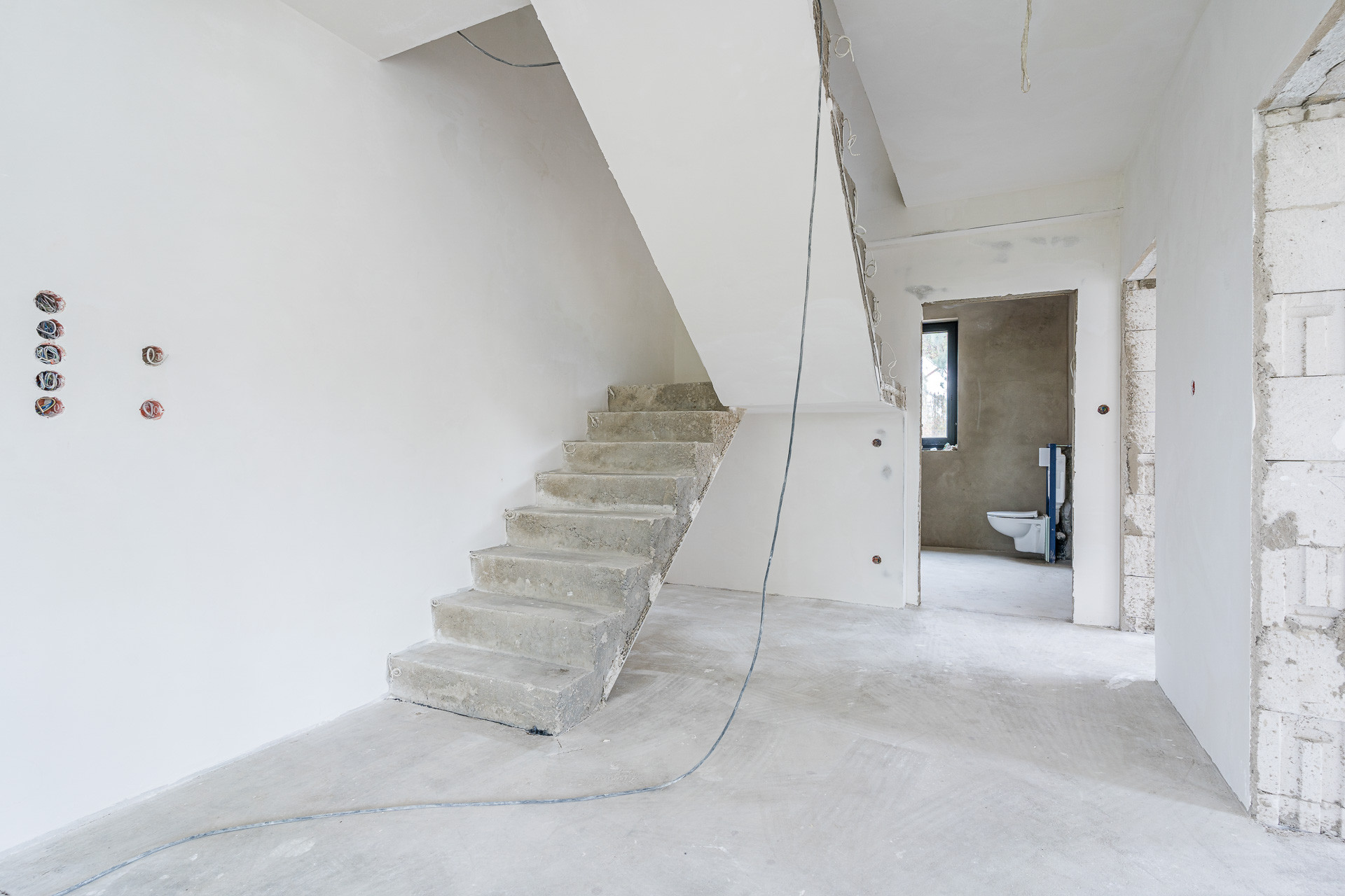 – tynki wew. wapienno cementowe, ściany cekolowane i szlifowane, przygotowane do malowania;