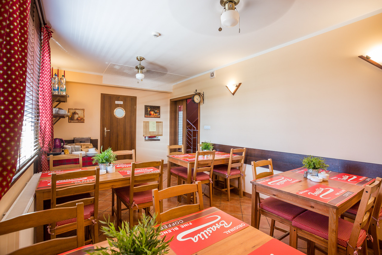 Został wybudowany w 2010 r. , z pustaka ceramicznego (porotherm) i wykończony dachówką ceramiczną. Jego powierzchnia całkowita to 600 m²,w tym 100 m2 to powierzchnia strychu, który można zaadaptować na cele mieszkalne. Posiada 20 pokoi, w tym 6 pokoi z łazienkami wraz kuchnią i jadalnią na I piętrze i 9 pokoi z łazienkami na II piętrze. Każdy z pokoi jest uposażony w szafę, łóżko, szafki a podłoga wykończona jest wykładziną dywanową. Na parterze znajduje się lobby – salę recepcyjną oraz mieszkanie o 110 m2 w skład którego wchodzą 2 pokoje , salon z aneksem kuchennym oraz łazienka. Do części mieszkalnej jest oddzielne wejście. System centralnego ogrzewania na gaz firmy Viessmann (wydajny-oszczędny piec z zamkniętą komorą spalania z zasobnikami ciepłej wody) oraz panele słoneczne.