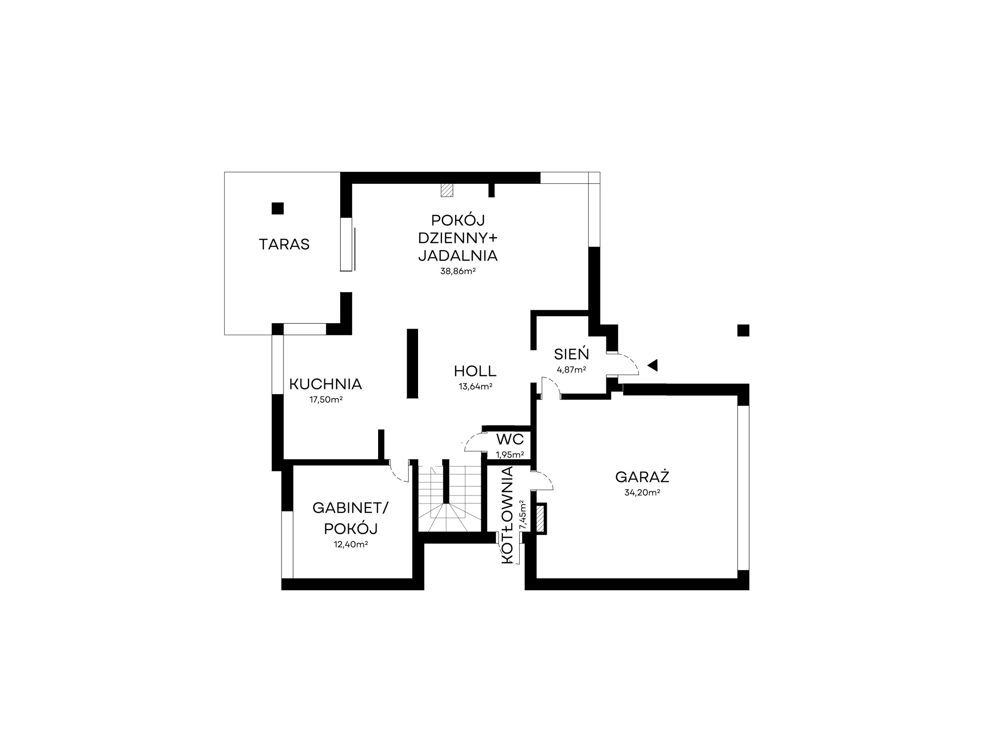 W bryle budynku garaż dwustanowiskowy z którego możemy wejść do przestronnego korytarza.