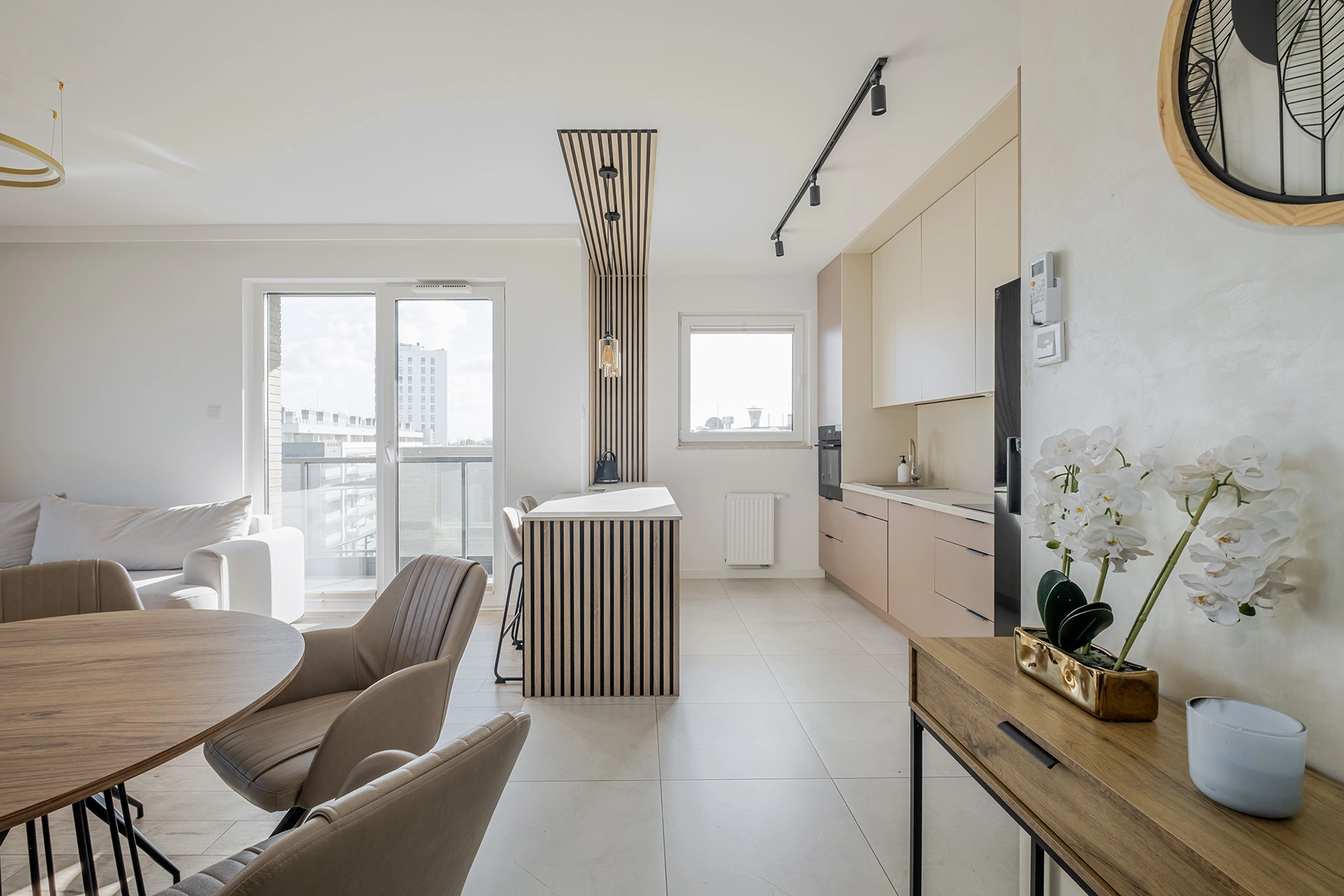 Przestronne mieszkanie o powierzchni 63,72 m², wyposażone w system Smart Home, położone jest na 7. piętrze.