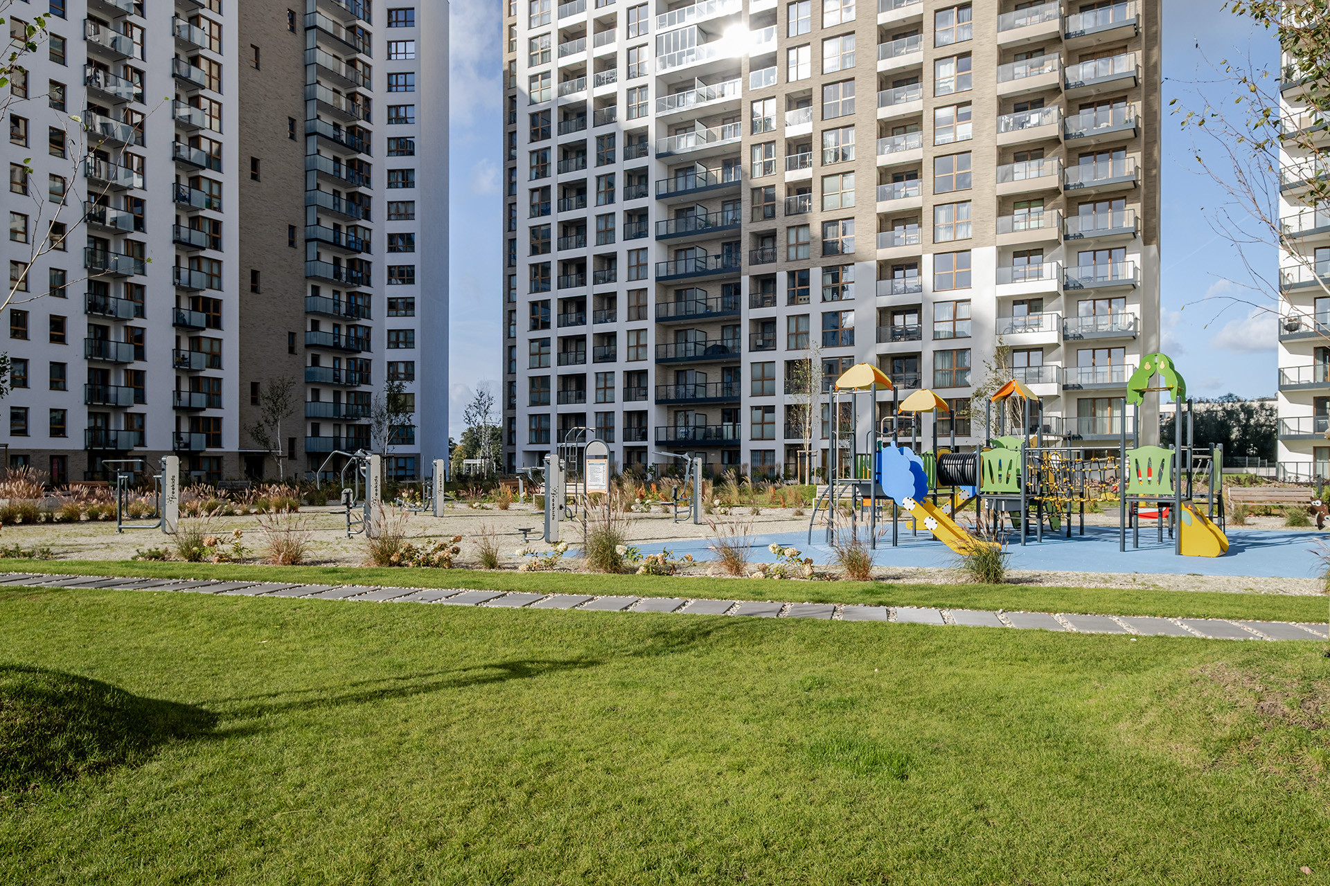 Osiedle zapewnia pełen komfort i bezpieczeństwo – całodobowa recepcja i ochrona, rozbudowana strefa fitness, siłownia, sauna oraz przestronny plac zabaw dla dzieci.
