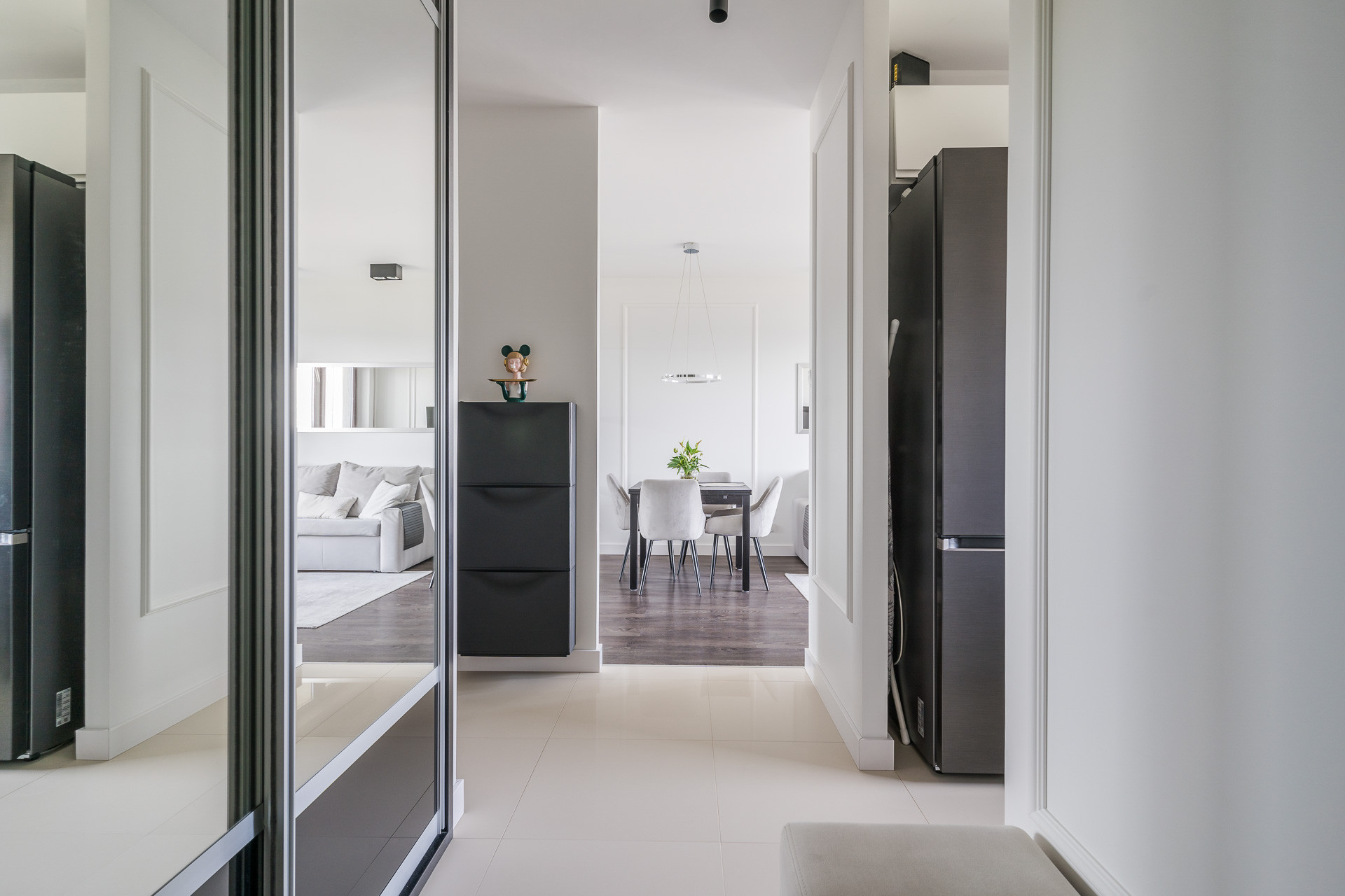 Wnętrza jest ciekawe, ale bez zbędnych dodatków. Duża liczba szaf w zabudowie znajdujących się w niemal każdym pomieszczeniu ułatwiających utrzymanie porządku, a przestrzeń wewnątrz czyni uporządkowaną i przyjemną dla oka.