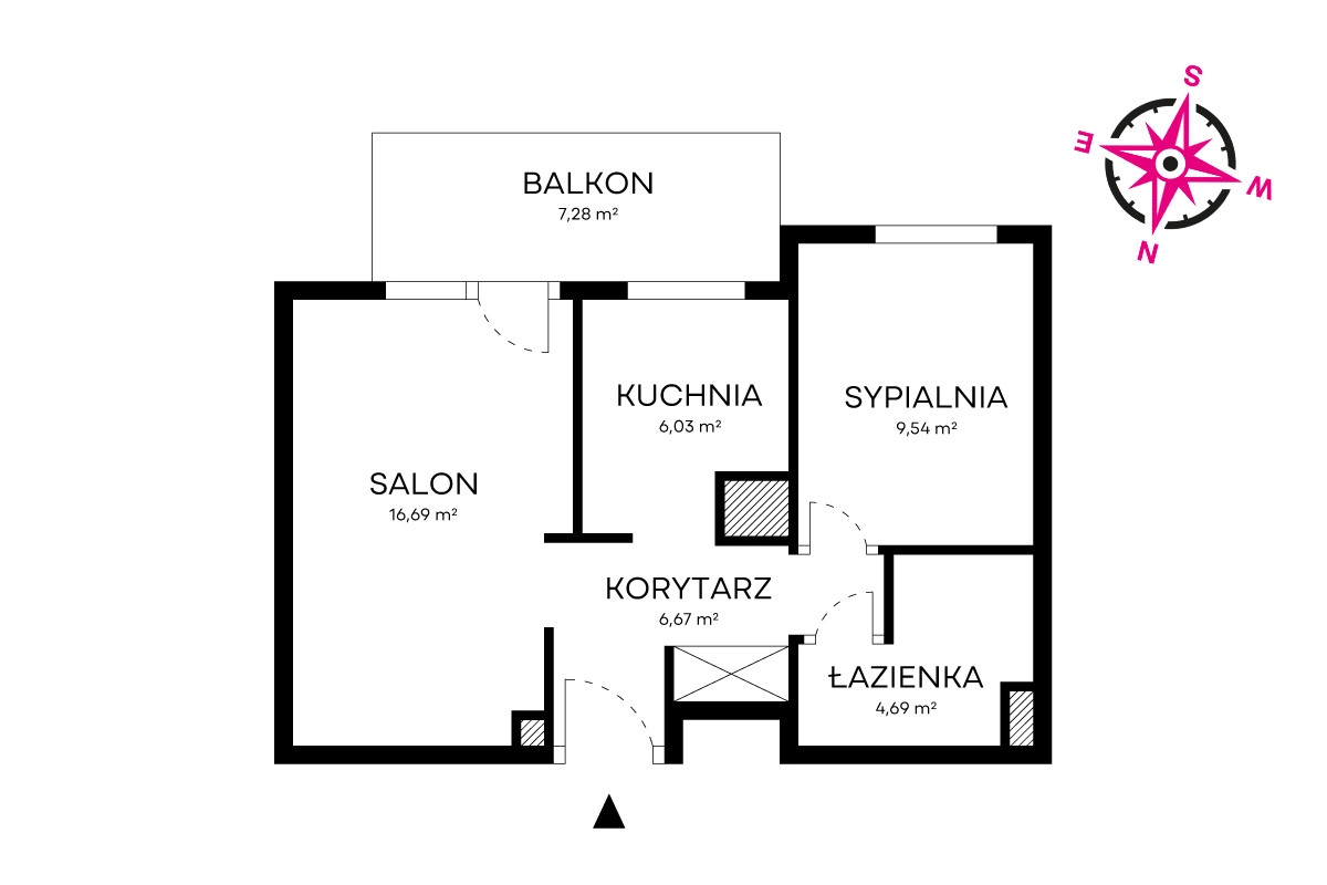 – przestronnego salonu pow. 16,69 m2 z wyjściem na przestronny balkon pow. 7,28 m2 położonego od strony południowej,