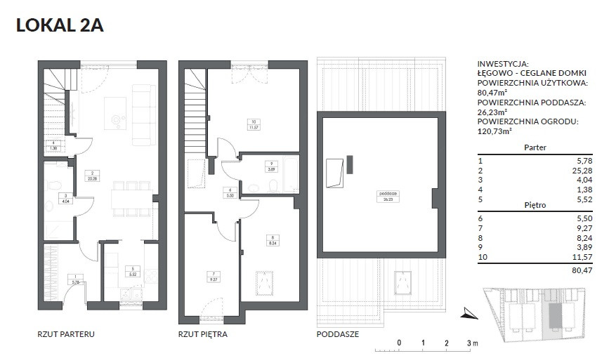 Łączna powierzchnia lokalu: 106,70 m2 (użytkowa 80m47 + 26,23 poddasze)