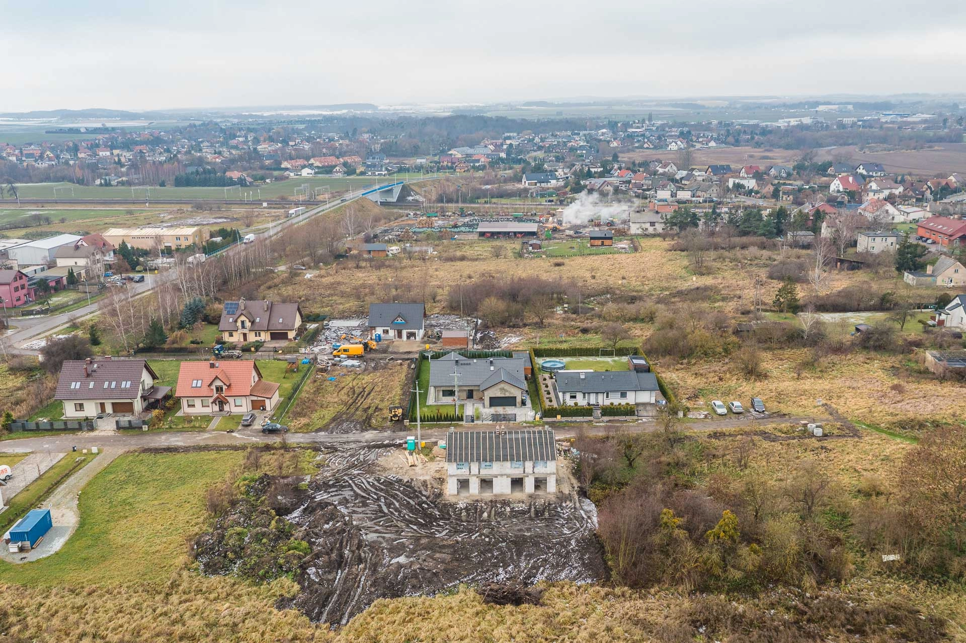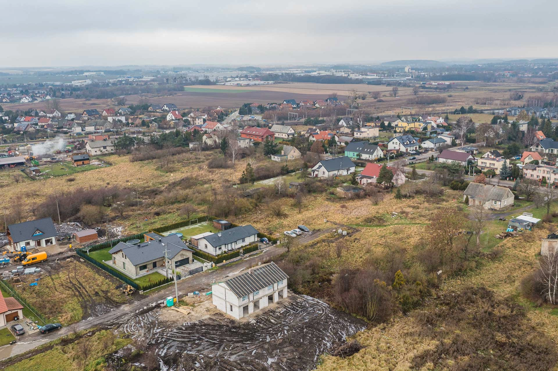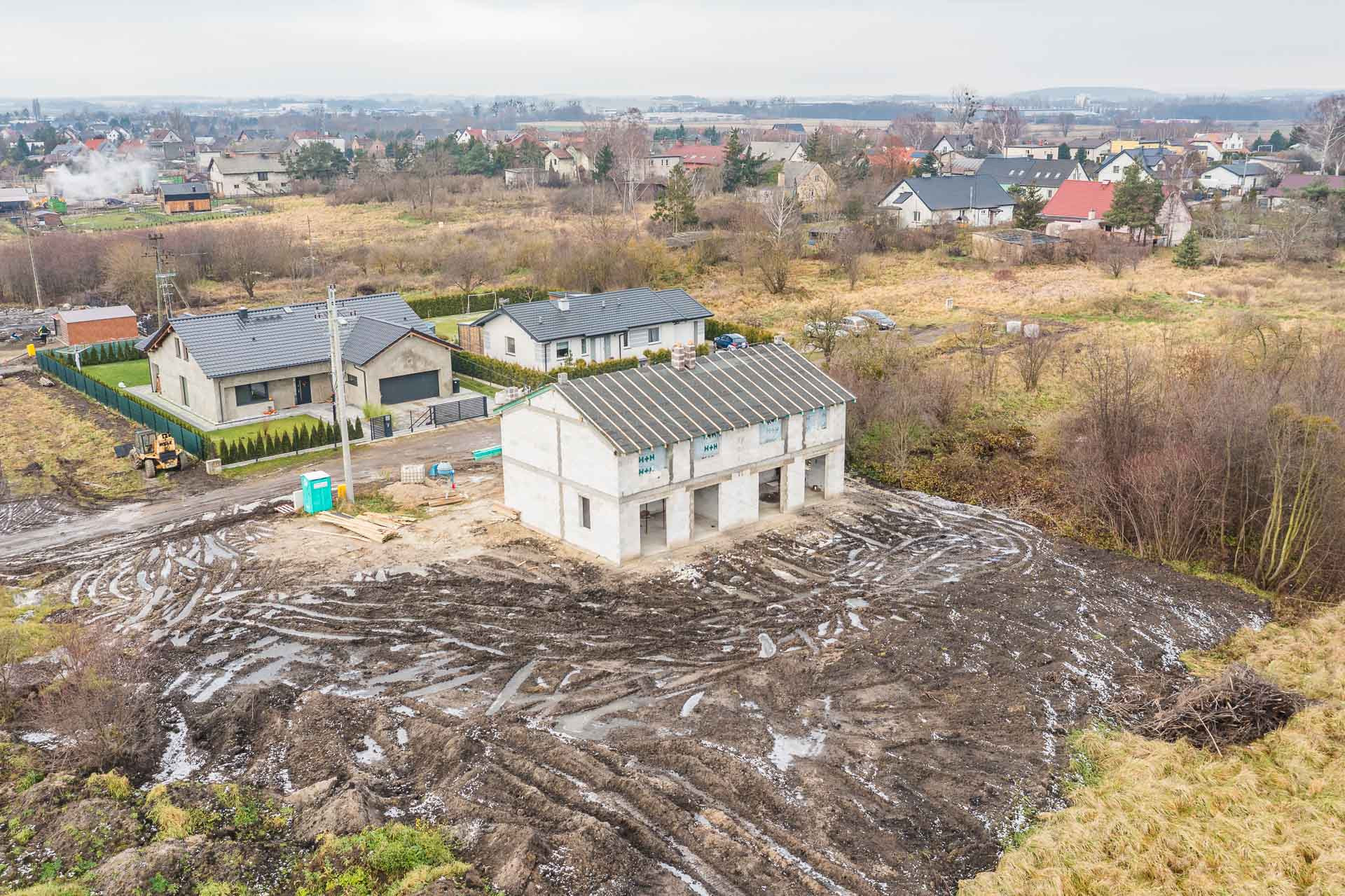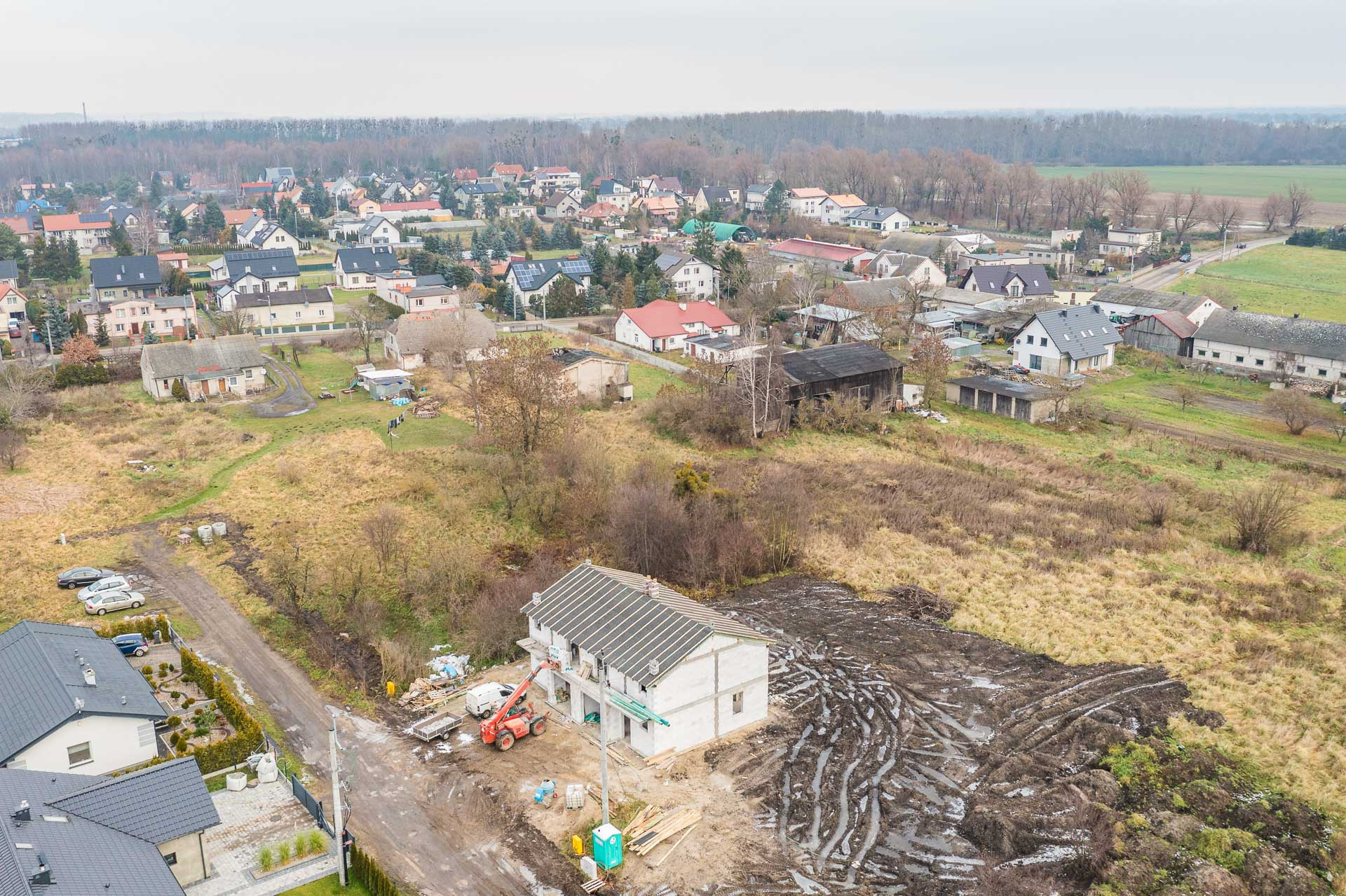 Letnie zdjęcia z drona przedstawiają okolicę tuż przed budową. Sąsiednia, zarośnięta działka została w październiku sprzedana a nowi właściciele zamierzają wybudować dom jednorodzinny.