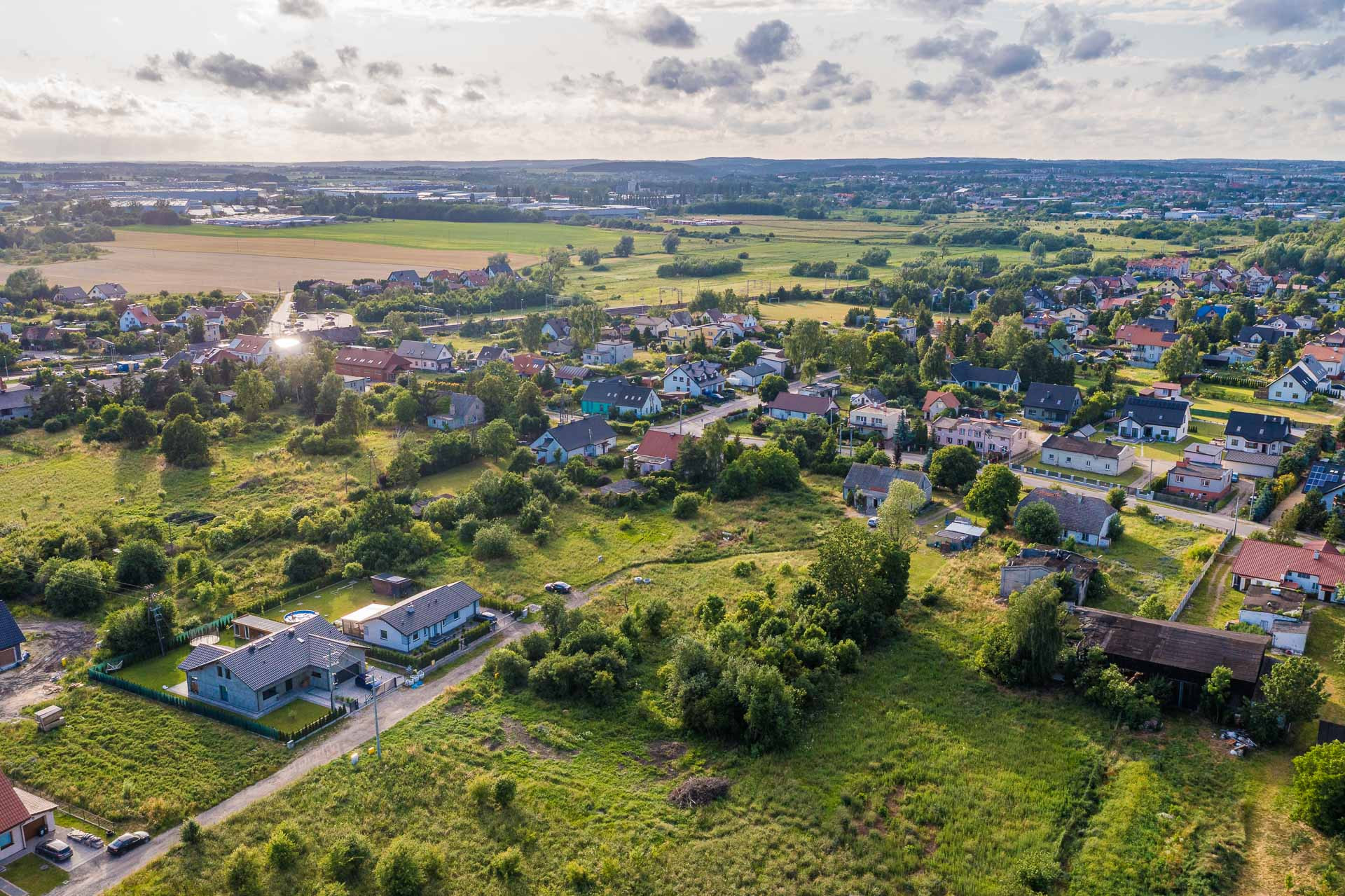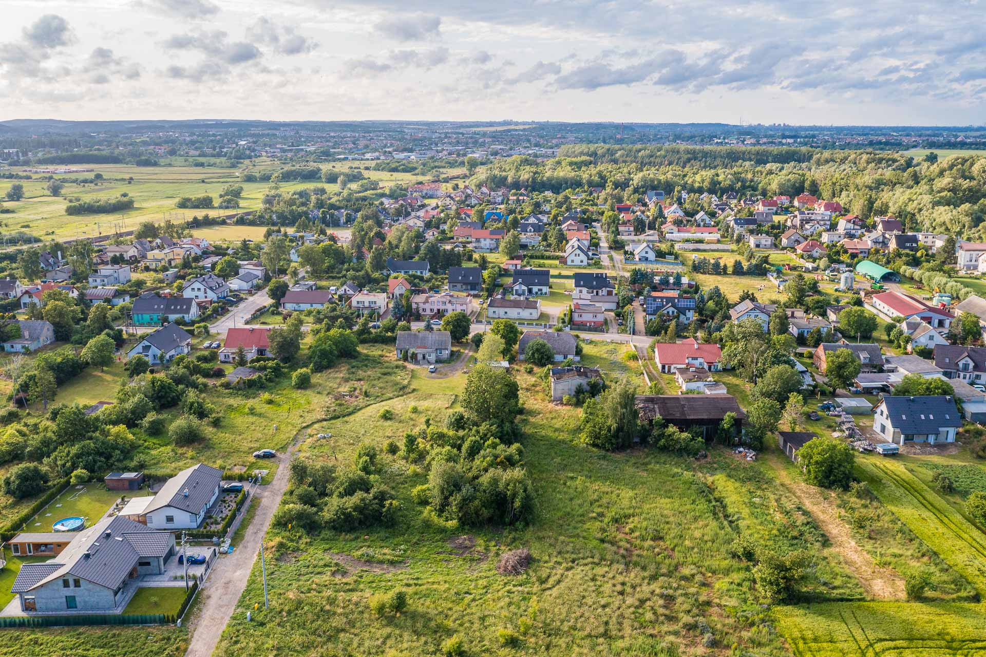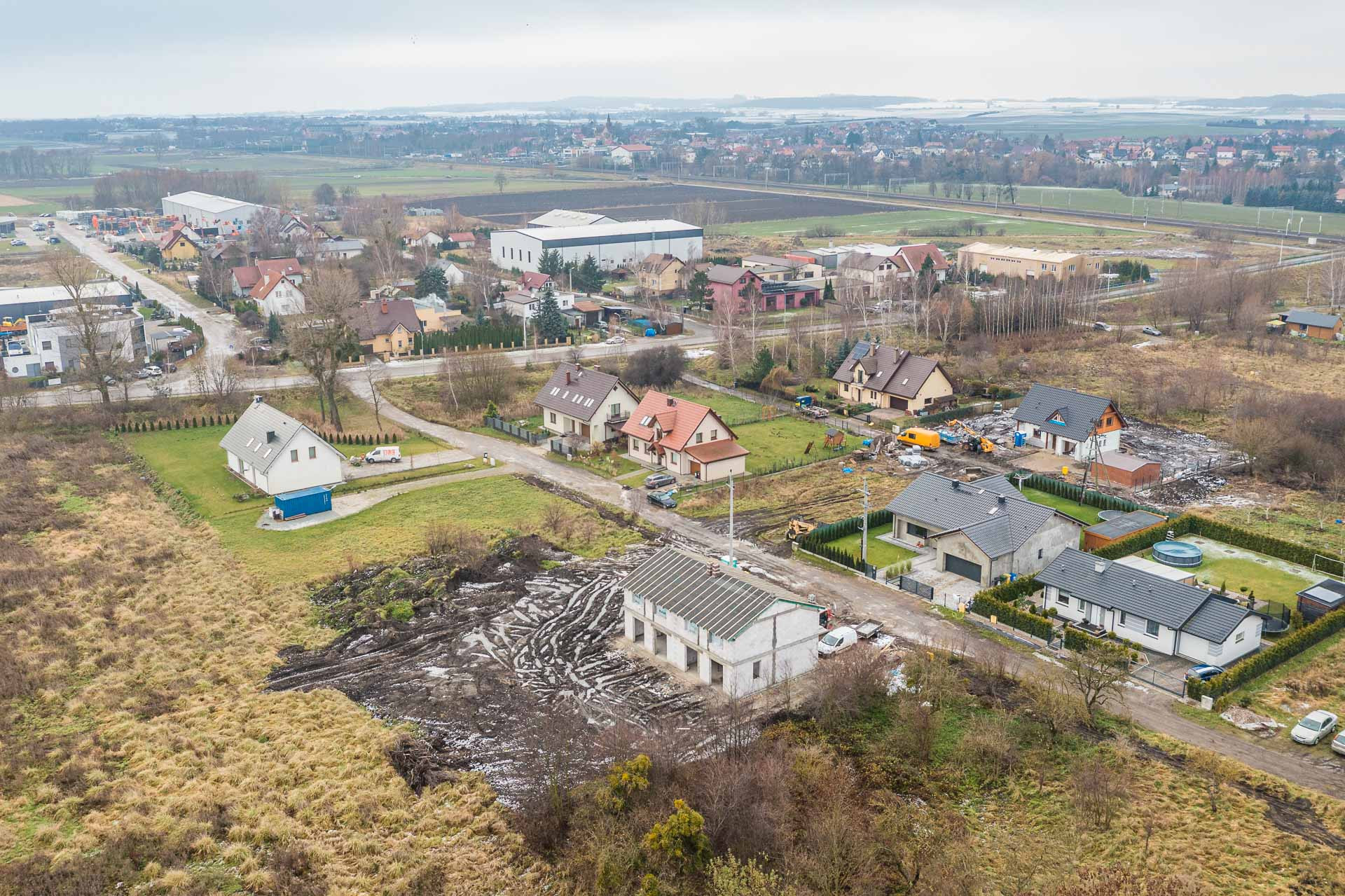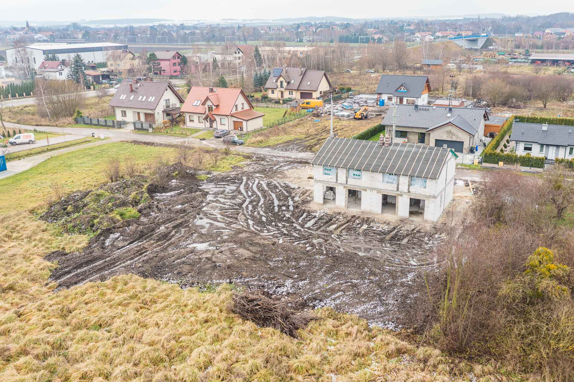Letnie zdjęcia z drona przedstawiają okolicę tuż przed budową. Sąsiednia, zarośnięta działka została w październiku sprzedana a nowi właściciele zamierzają wybudować dom jednorodzinny.