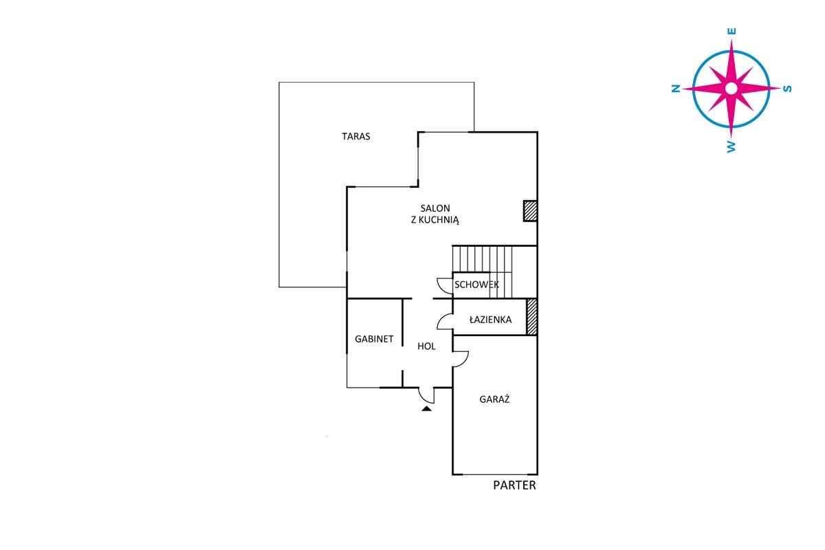 – Powierzchnia użytkowa parteru to 79,53 m2, składają się na nią: salon z kuchnią, gabinet, łazienka z toaletą, korytarz i schowek/spiżarnia.